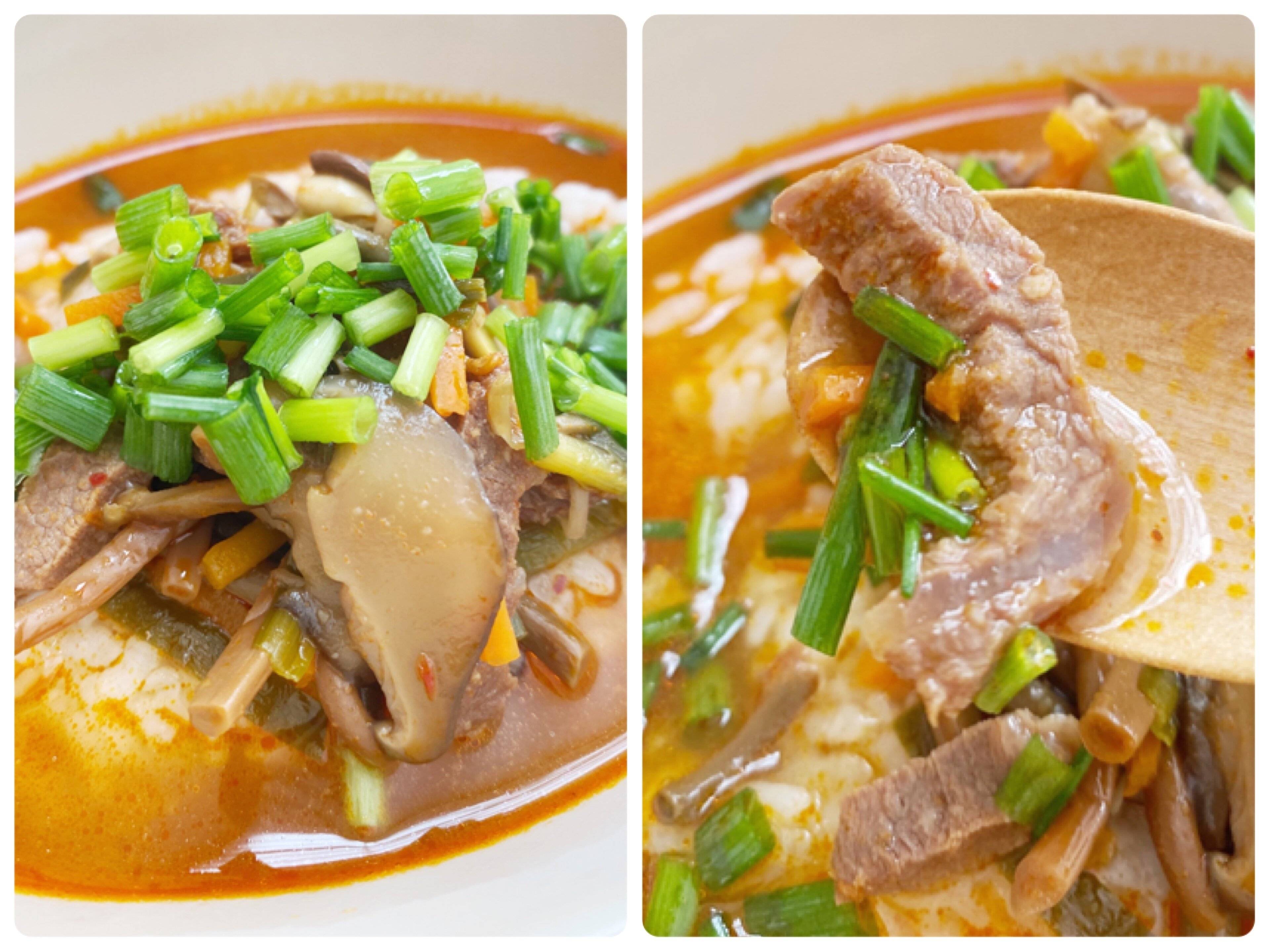 牛肉や野菜がたっぷり入っていて、それぞれの食感や味を楽しめます。程よい辛さで、具材や調味料のうまみがしみ出たスープは絶品!寒い日は体が暖まりますし、食欲が落ちている時にもサラッと食べられます◎