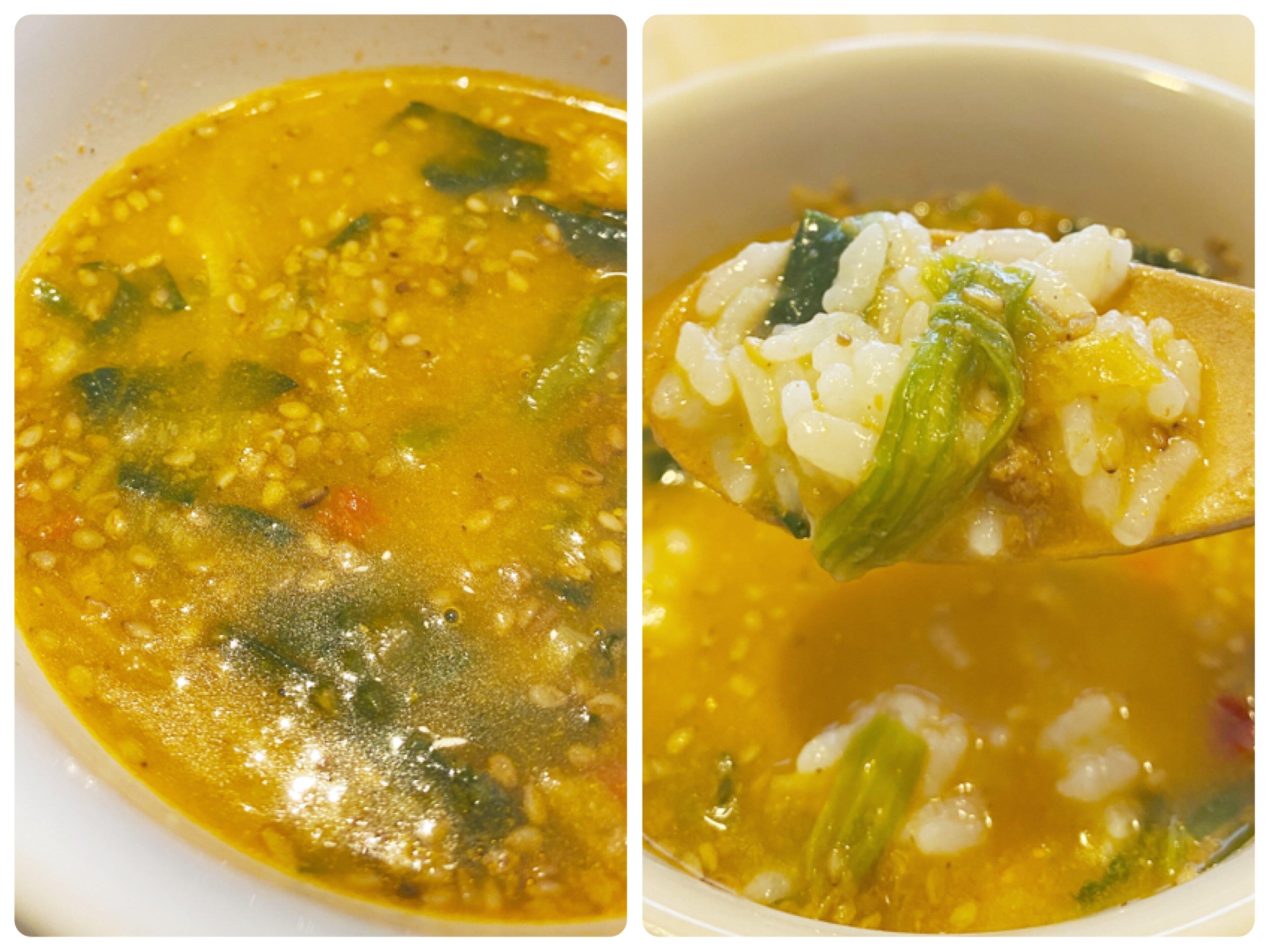 フリーズドライのスープですが、濃厚でしっかり味なのでごはんにかけてもおいしくいただけます。ごまの風味豊かでコクがあるスープはごはんとの相性抜群!ひき肉や野菜の食感もしっかり感じられ、本当にフリーズドライ?と疑う程クオリティの高い商品です。