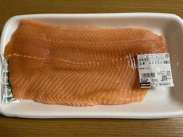 コストコに通い始めた時は、この大きなサーモンフィレを見てびっくり、圧倒されていましたが。