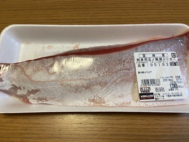 コストコのぶりといえば黒瀬ぶり。この「刺身用活〆黒瀬ぶりさく」(購入時:1380円)は、とにかく一度食べるとびっくりします。