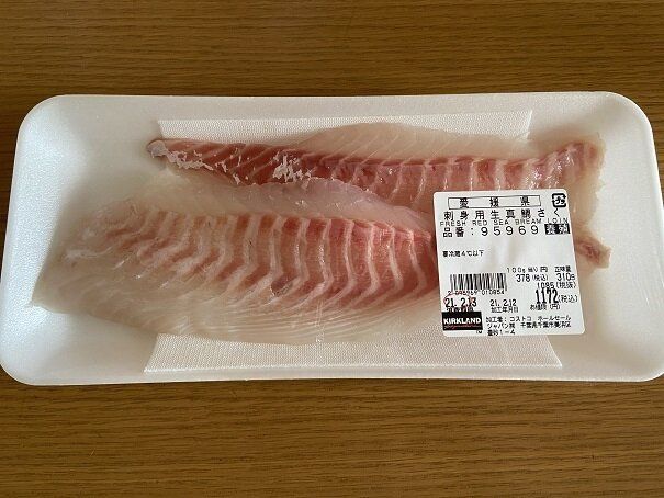 コストコの刺身用生真鯛さく(購入時:1172円)は淡泊ながらも甘みと旨みがしっかり感じられてとっても美味しいんです。