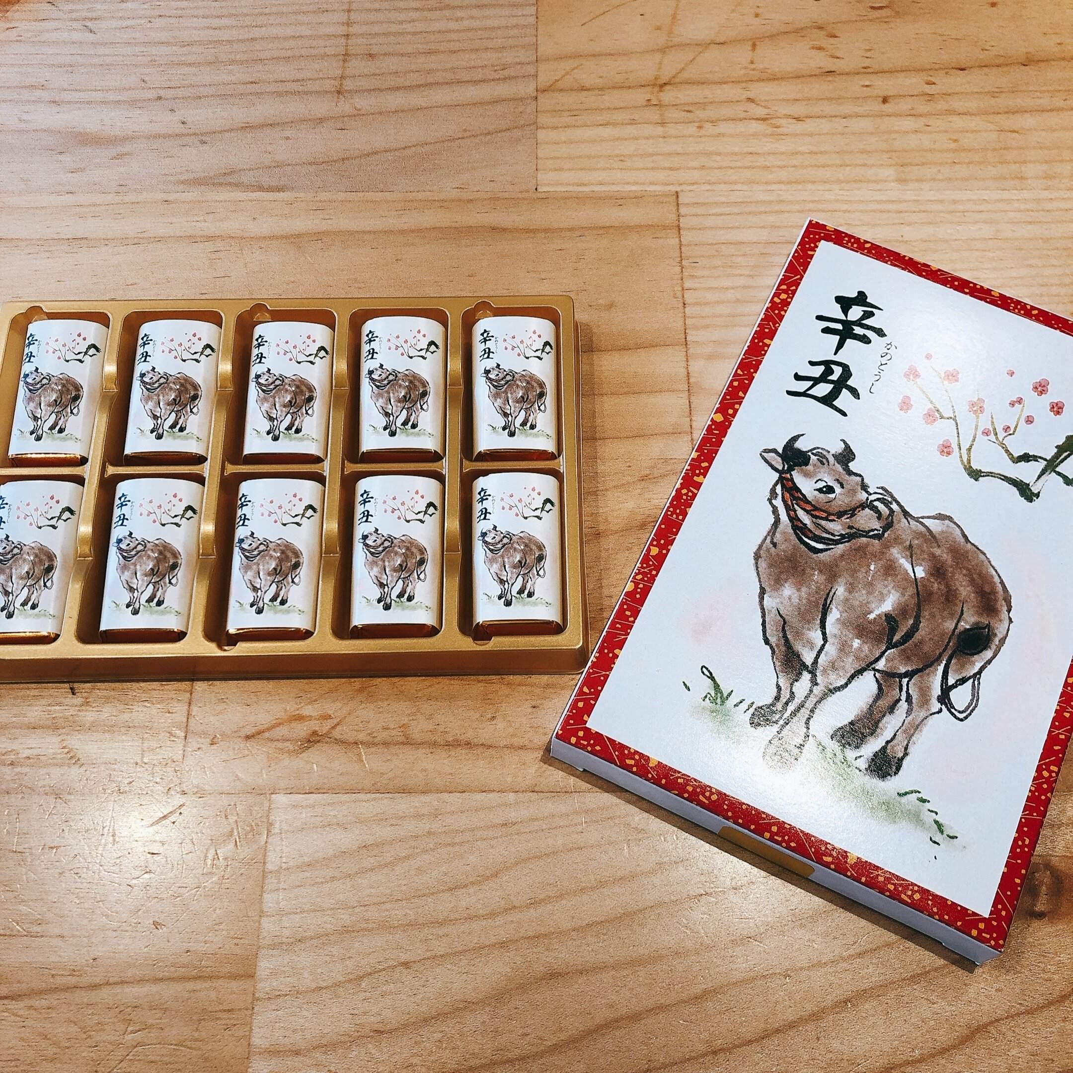 パッケージの裏には、丑年生まれの方の特徴が書いてあったり、以前の丑年の出来事や流行語、映画、ヒット曲が書いてありとても興味深いので裏のパッケージにも注目してみてください。