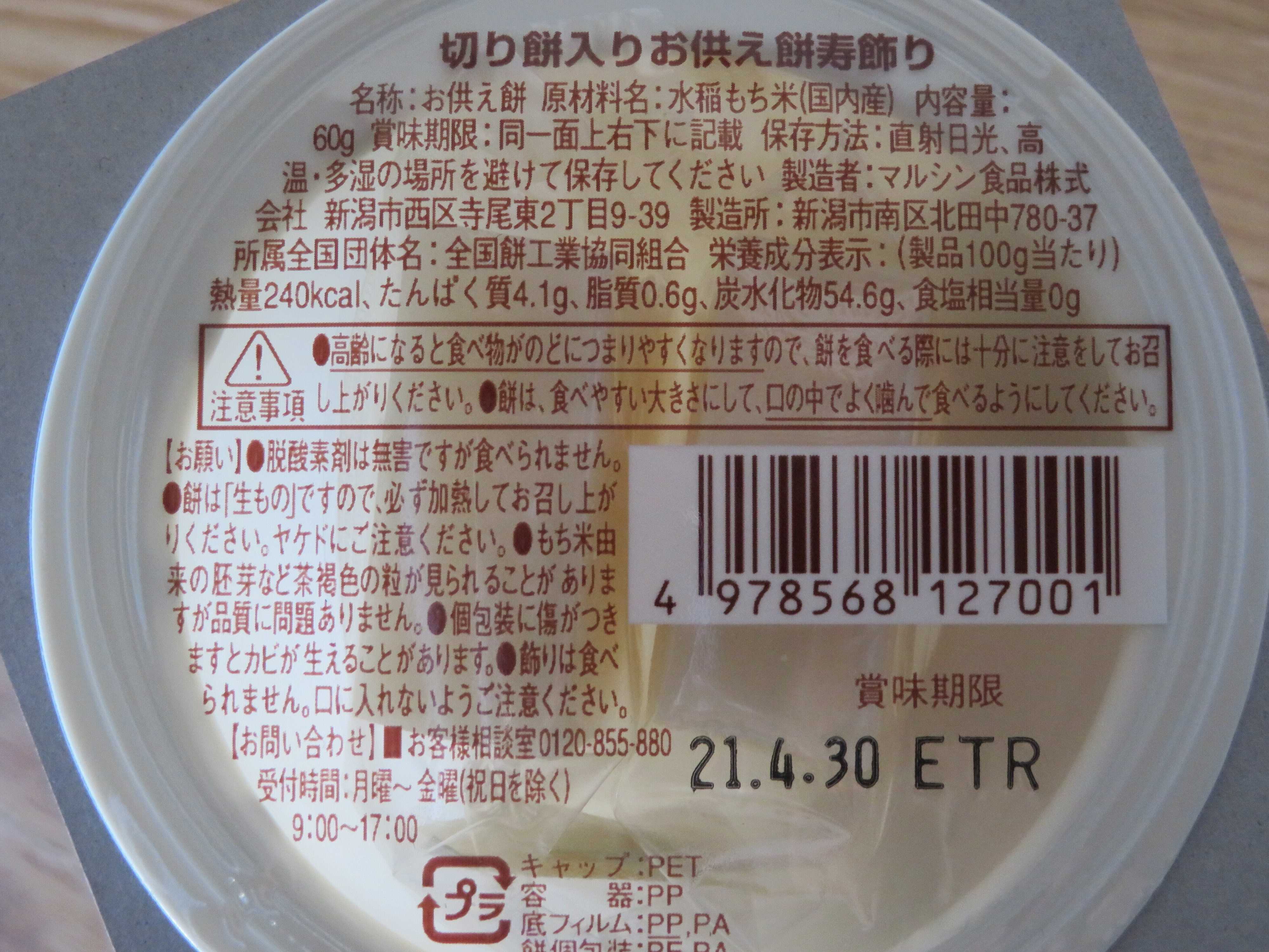 正式名称は「切り餅入りお供え餅寿飾り」。税込280円です。