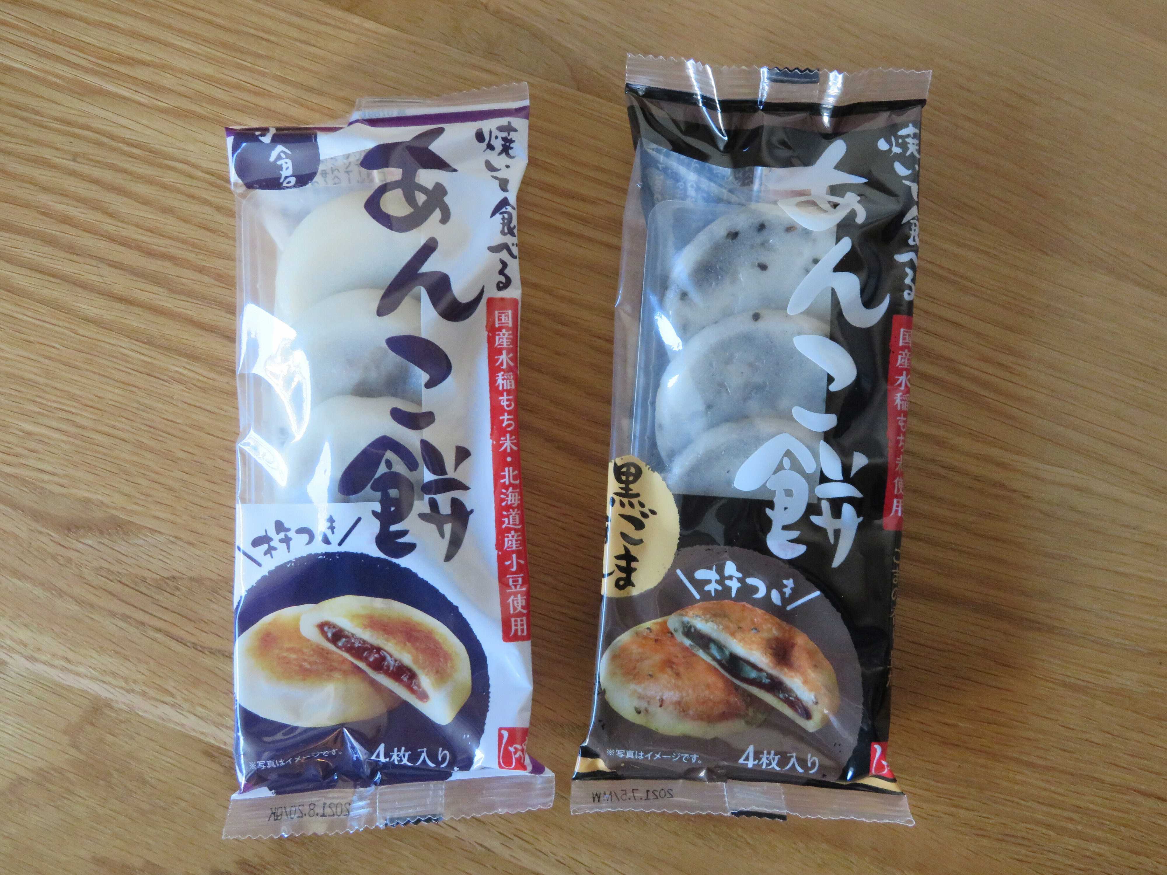つぶあんが入った「焼いて食べるあんこ餅 小倉」と黒ごまのペーストが入った「焼いて食べるあんこ餅 黒ごまあん」(どちらも税込267円)があります。