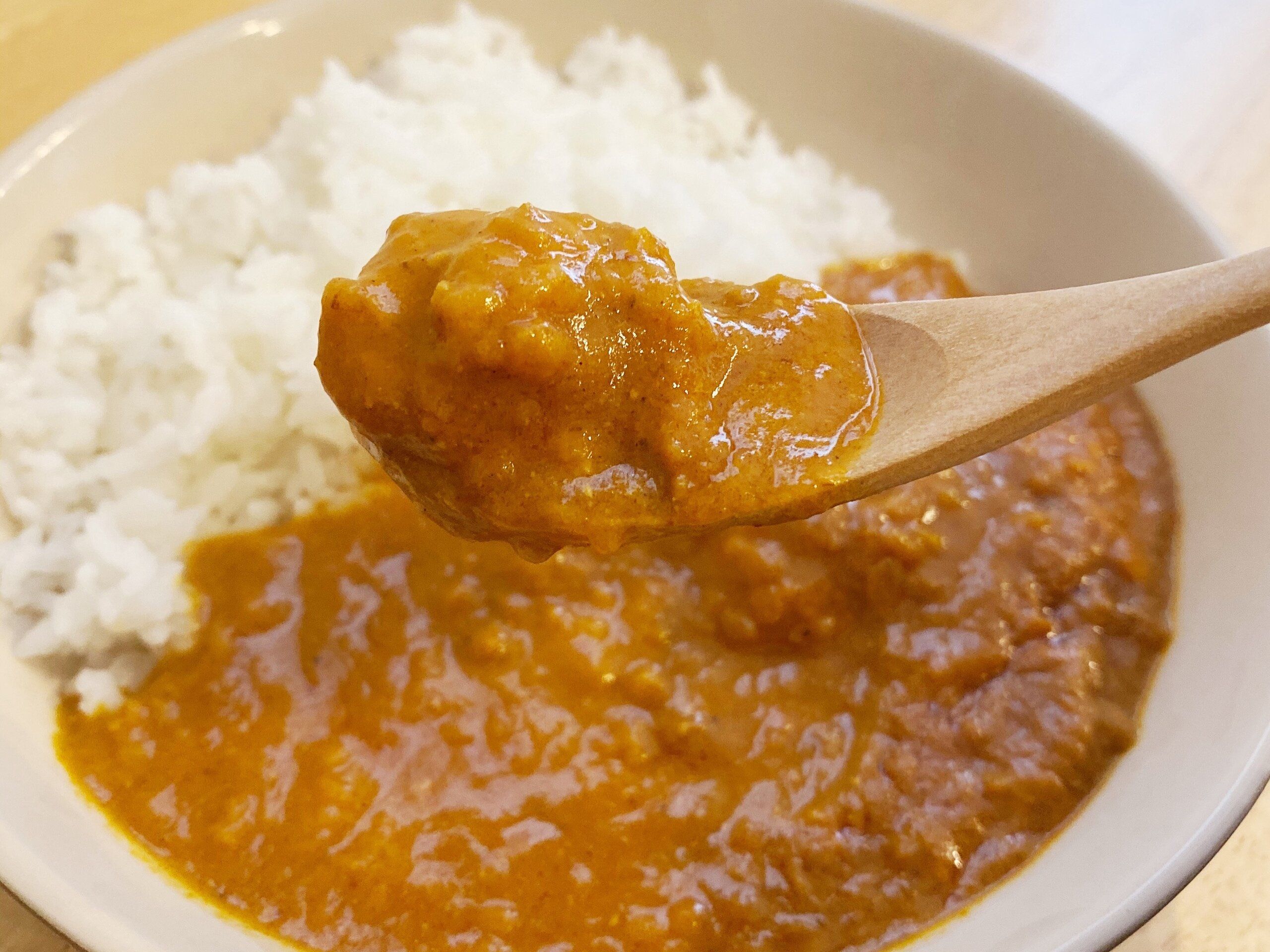 軽く煮込んだだけでコクと旨みたっぷりのトマトカレーができあがり〜。
