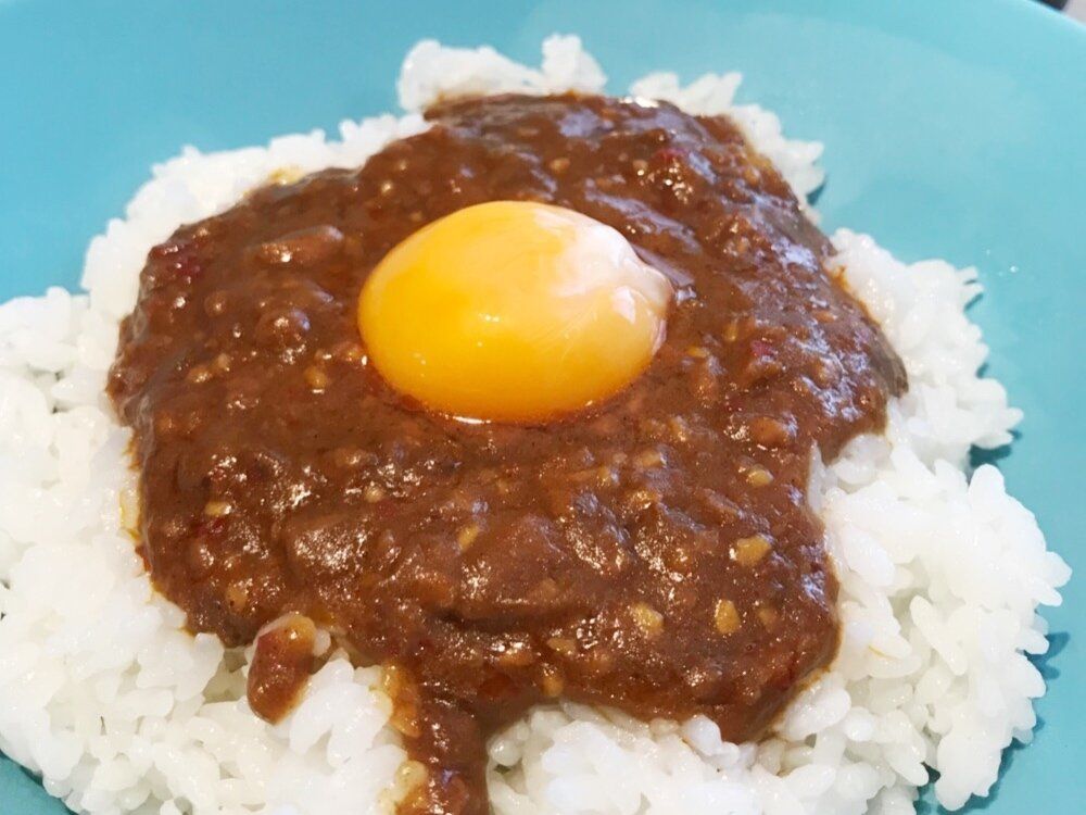 卵黄のまろやかさが加わってもなかなかの辛さです!