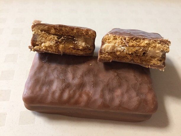 チョココーティングにキャラメルクリーム、全体的には甘いけど、中央のキャラメルソースの塩気が全体を引き締めて飽きのこない美味しさ。とろ~りクリームとサクサクのビスケットの食感も楽しいお菓子です。
