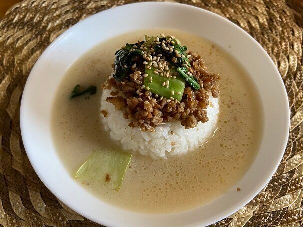 具材は肉そぼろとチンゲン菜を用意。