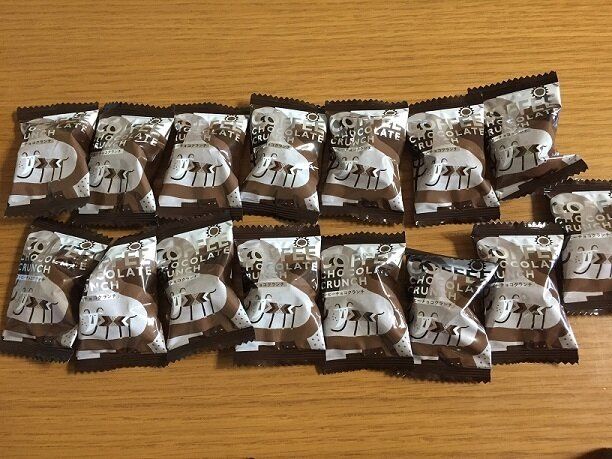 カルディで人気のコーヒー豆「マイルドカルディ」が粗挽きで入ったチョコレートクランチ。個包装で15個入っています。
