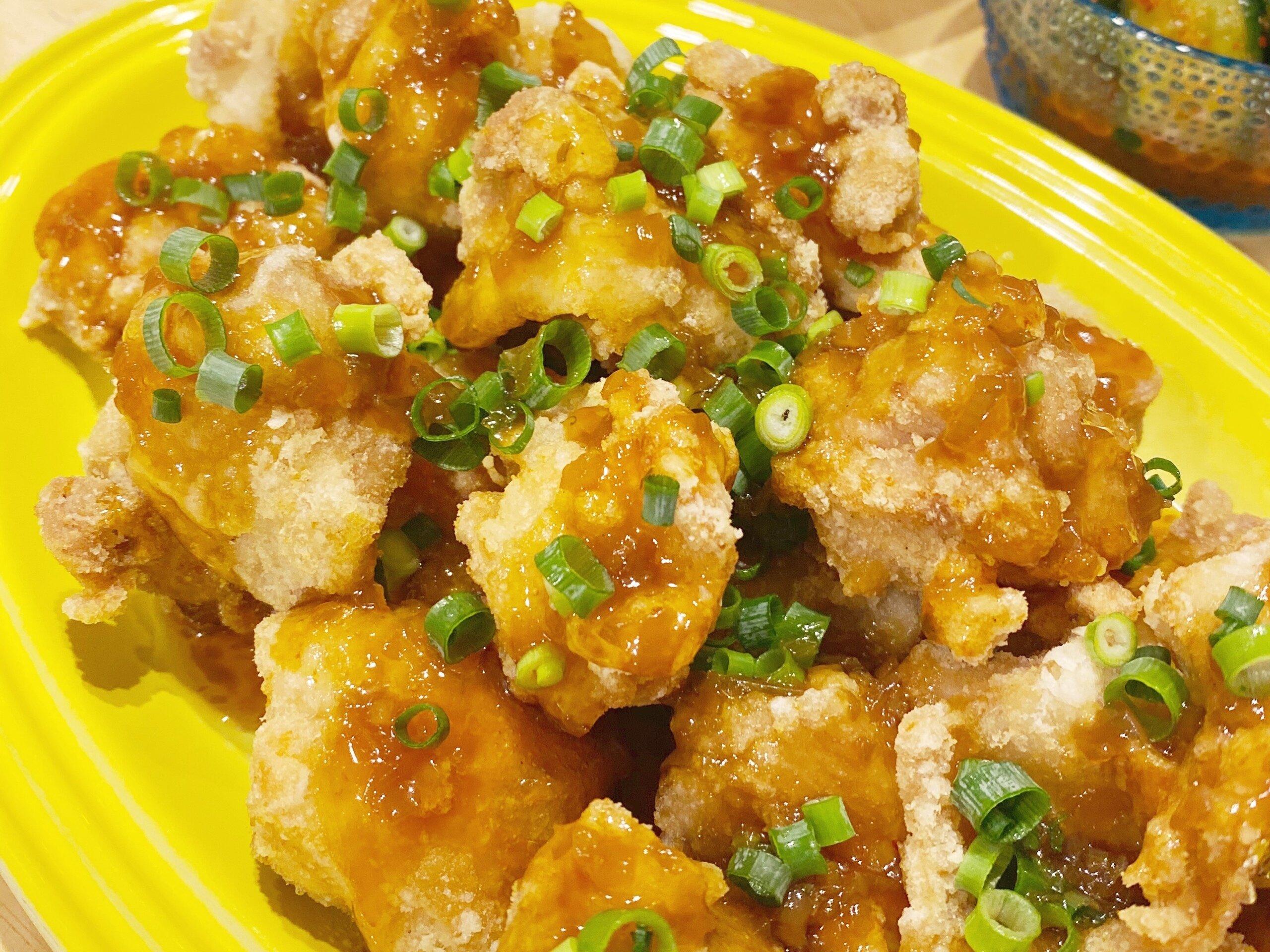塩胡椒で軽く下味をつけて揚げた唐揚げにかけるだけ!あっという間に完成します。