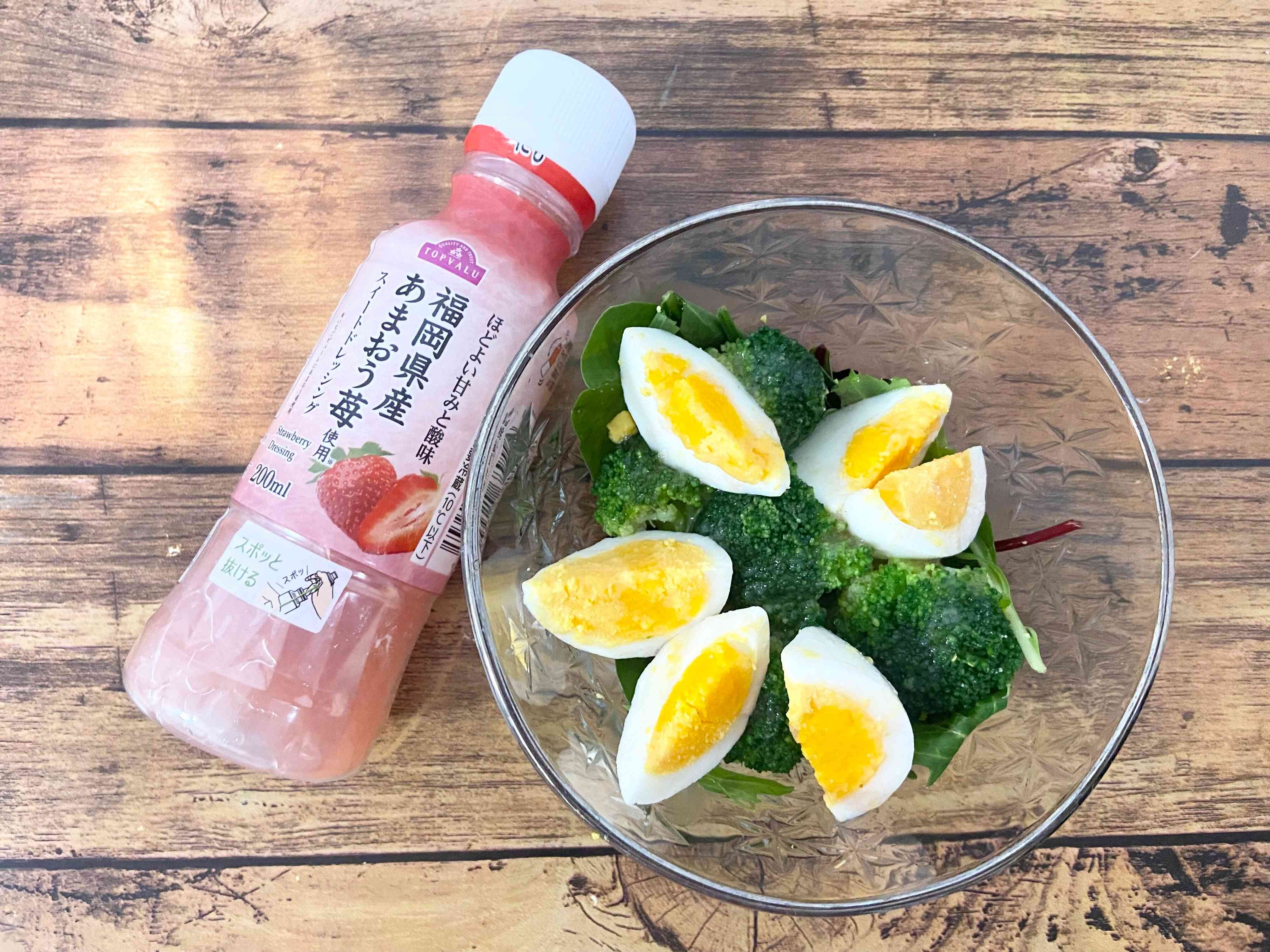 「福岡県産あまおう苺使用 スイートドレッシング」はドレッシングなのでサラダ全般に使用できますが、筆者がとくにおすすめなのがベビーリーフのサラダ。少し苦味を感じることもあるベビーリーフも「福岡県産あまおう苺使用 スイートドレッシング」のいちごの風味が苦味をカバーしてくれます。ほかにも、ブロッコリーやゆでたまご、アボカドなどとも相性抜群!