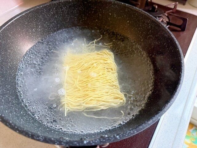 沸騰させたお湯で麺を茹でるだけ。