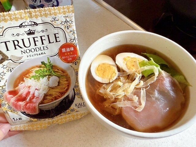 210円で「トリュフらぁめん」が食べられるとは。驚きです。早速作ってみました。