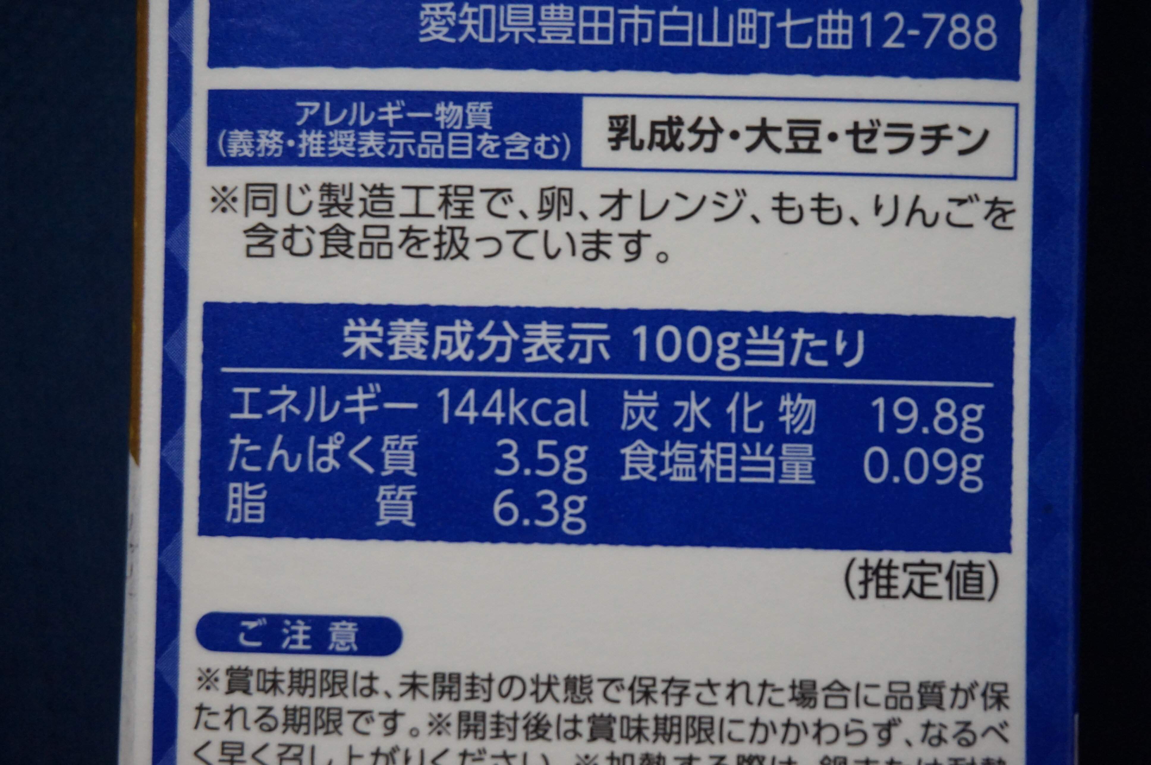 ・カロリー:100g当たり144kcal