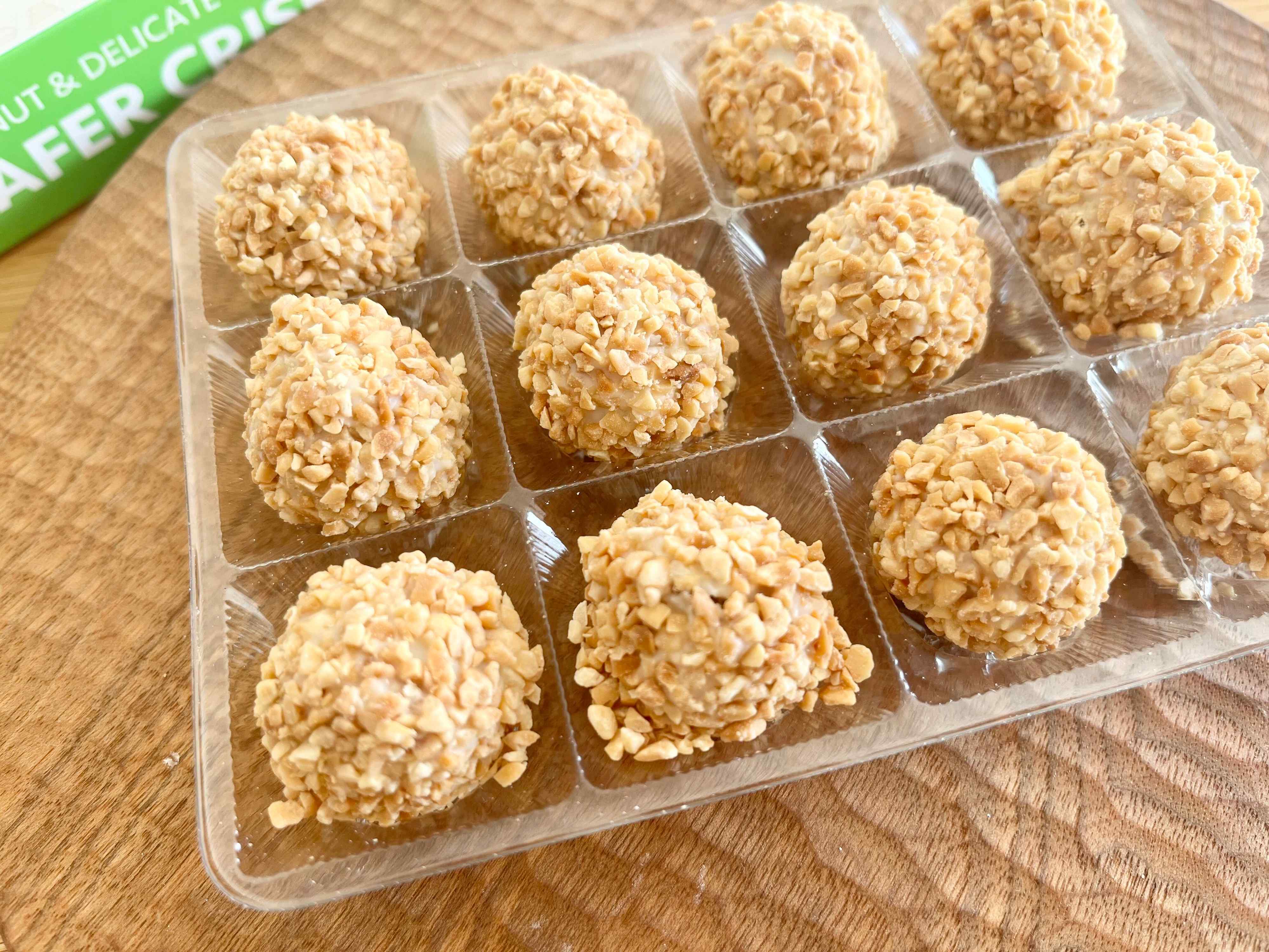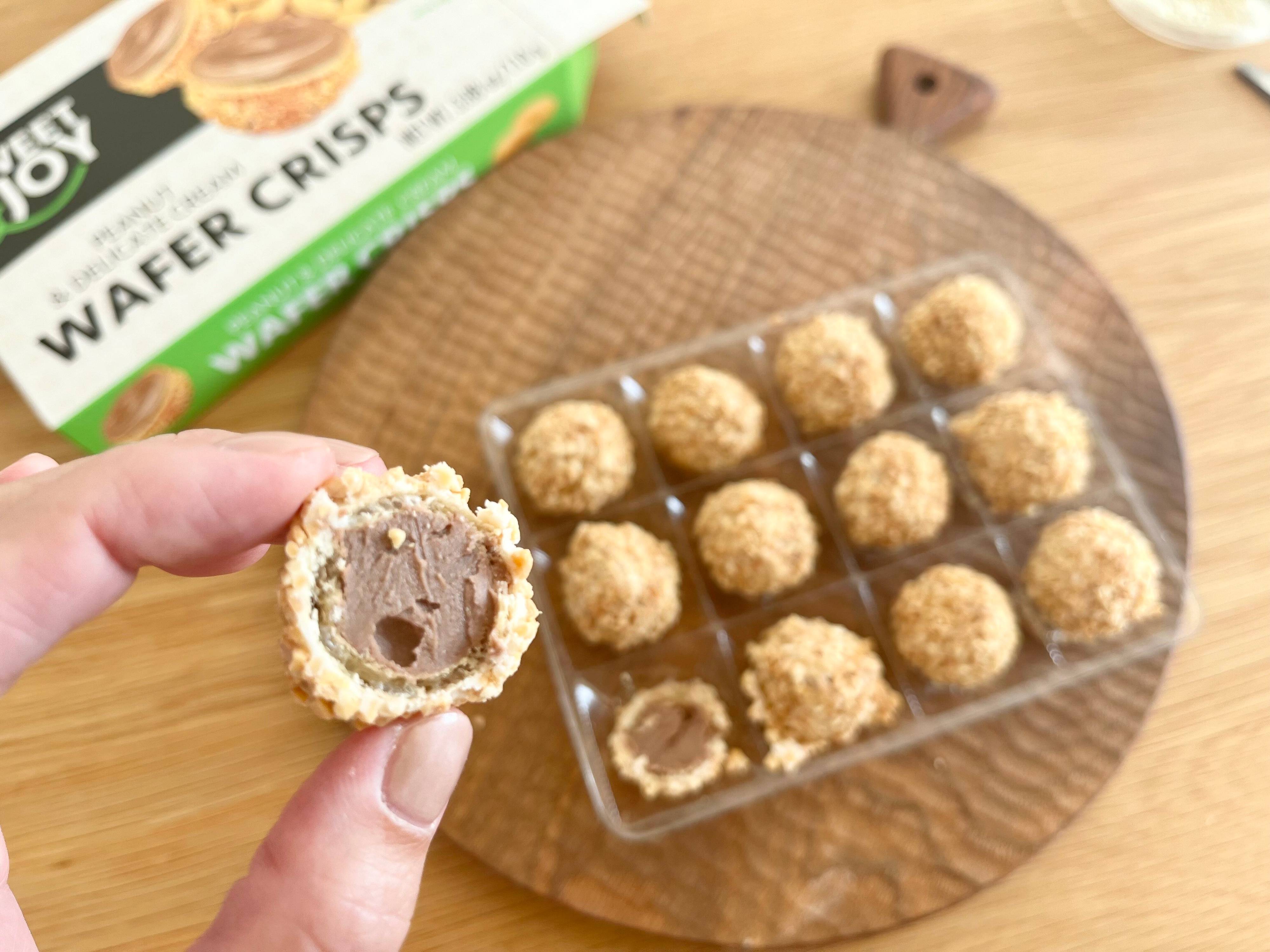 サクサクのウエハースの中からは、ピーナッツ風味のフィリングがトロッととろけ出てきます。フィリングは口当たりが滑らかで、まるで香ばしく濃厚なナッツの風味がする生チョコみたいでとっても美味しい!ひと口で次から次へといろんな食感が楽しめて絶品です。子どものおやつとして、また仕事や家事の合間に一息入れたい時などにピッタリです。