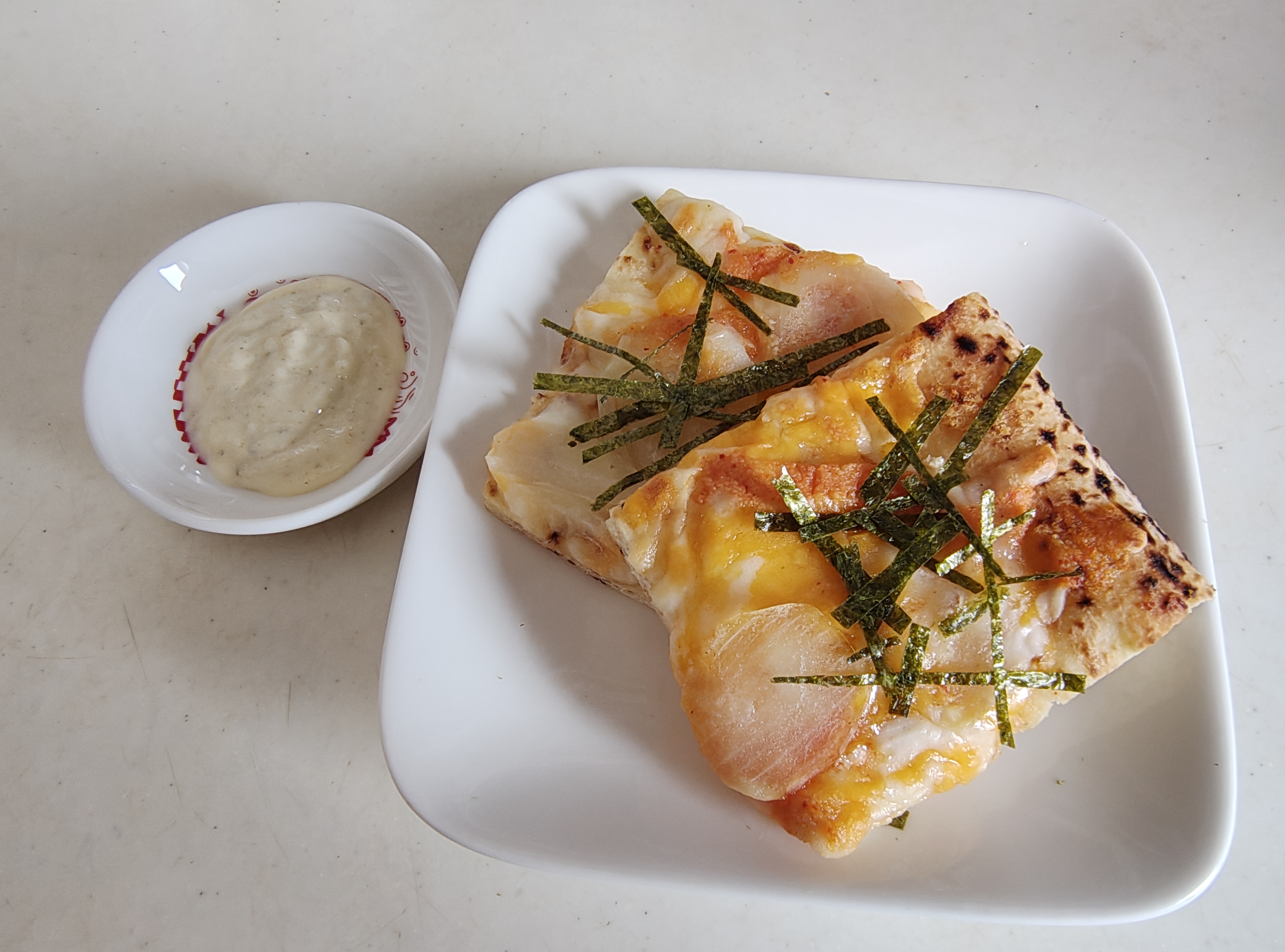 マヨネーズに柚子胡椒を混ぜた「柚子胡椒マヨ」を少しつけるのもおすすめ。柚子胡椒の爽やかな風味が濃厚な明太子ピザとよく合います。それ以外には、大葉やコーンなどもおすすめですよ。お気に入りのトッピングを見つけてみてくださいね。