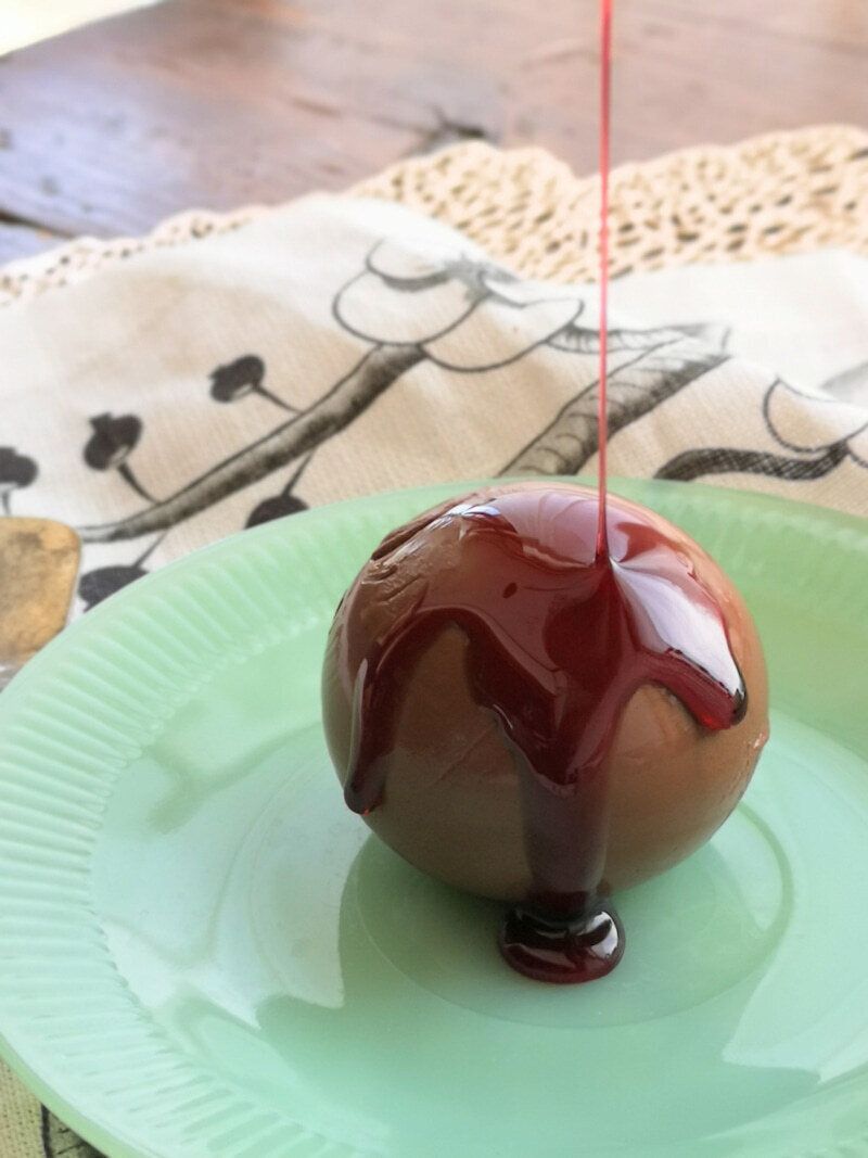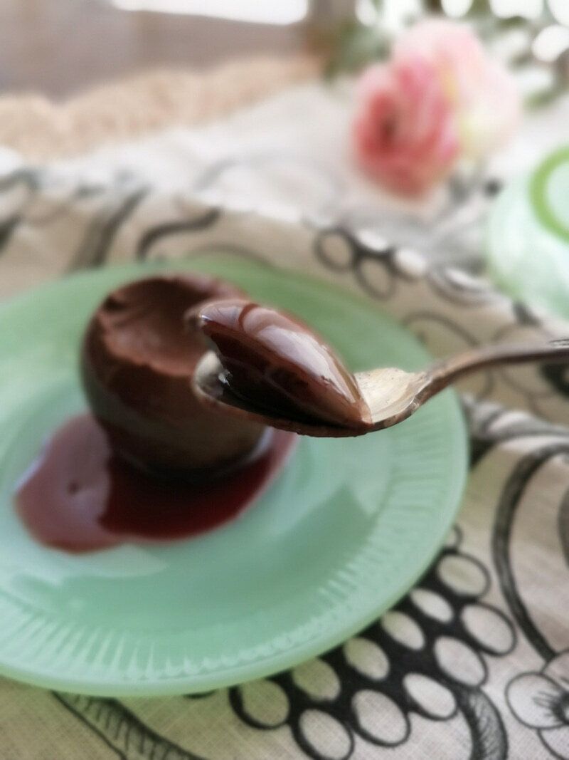 その名のとおり、かなりダークな印象なのですが、なんとチョコレートプリンに、レッドベリーソースという、赤いソースをかけて食べる商品です。