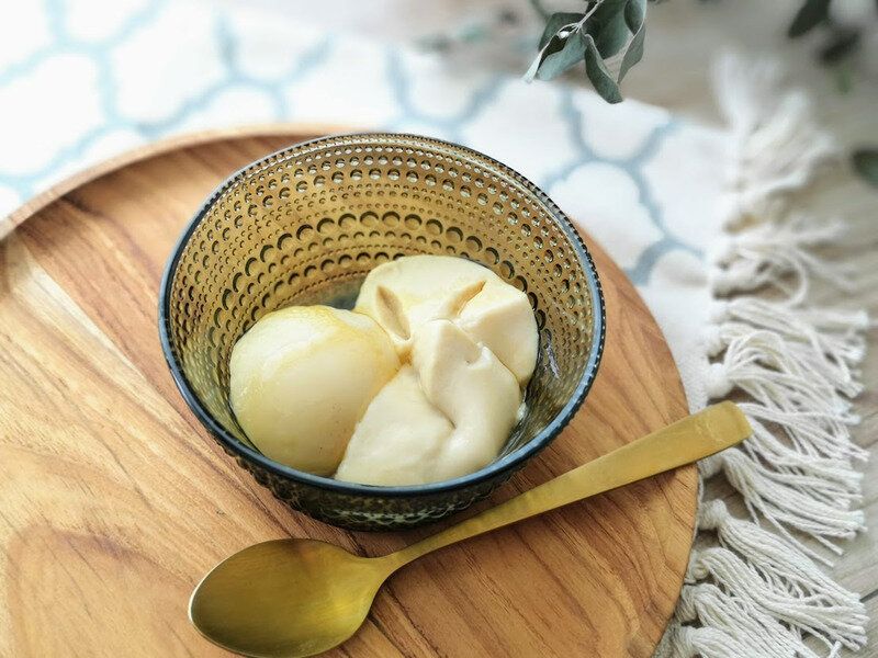 なめらかで、水切りヨーグルトのような硬さも感じるのですが、少し粘り気があるせいなのか、食感はもっちりと感じます。