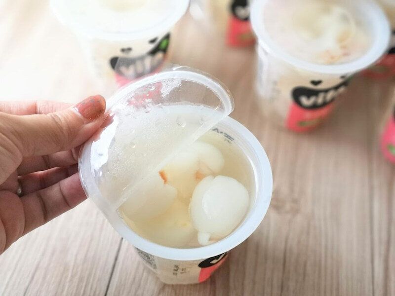 カップの中にはたっぷりのシロップと、ライチがどっさり!