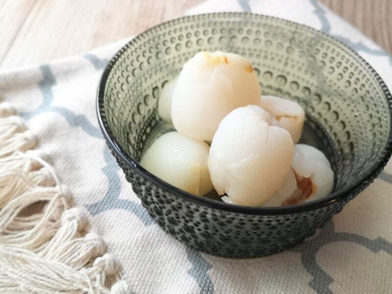 ライチの大きさは3cmほどで、大きさによりますが、大体6~7個入っています。