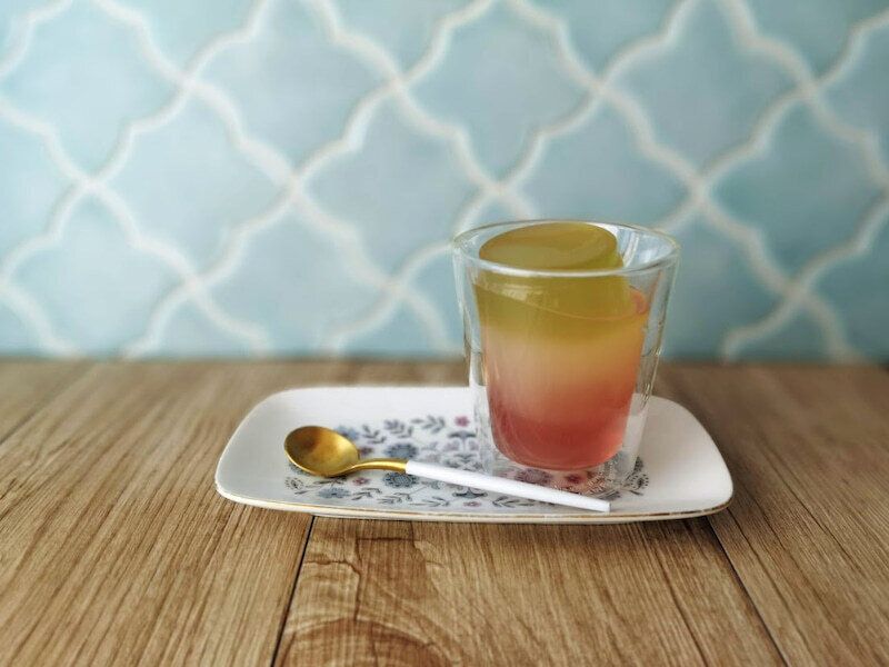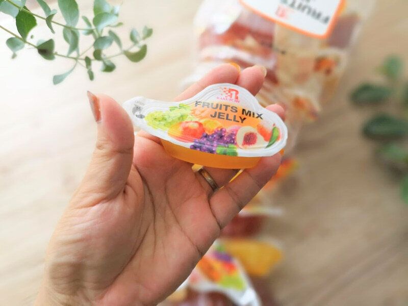 日本のこんにゃくゼリーに比べるとやや柔らかめで、ナタデココが入っていて食感も楽しい一品です。