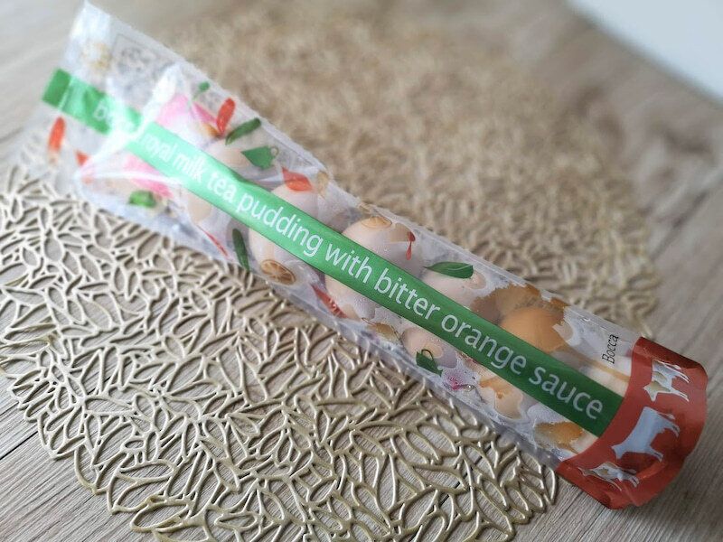 牧家の丸い風船プリン、限定フレーバーの「デビルズチョコレートプリン」です。