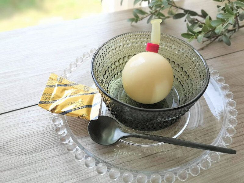 牧家の風船に入った丸いプリン。