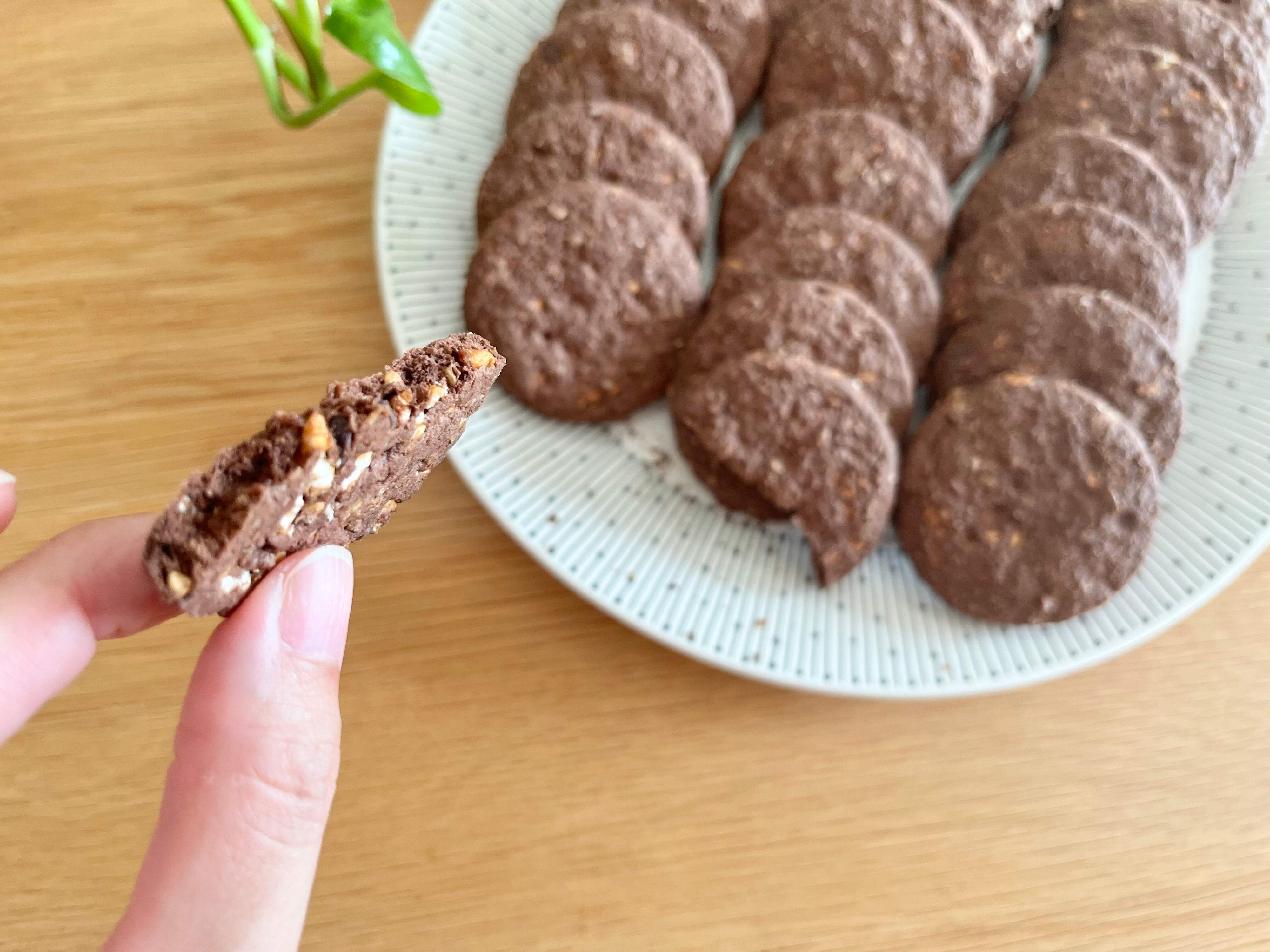 チョコレートとココアの風味は濃厚ですが、甘さは控えめ。おやつとしてだけでなく、少し小腹がすいた時や軽めに朝食を食べたい時などにも最適ですよ!