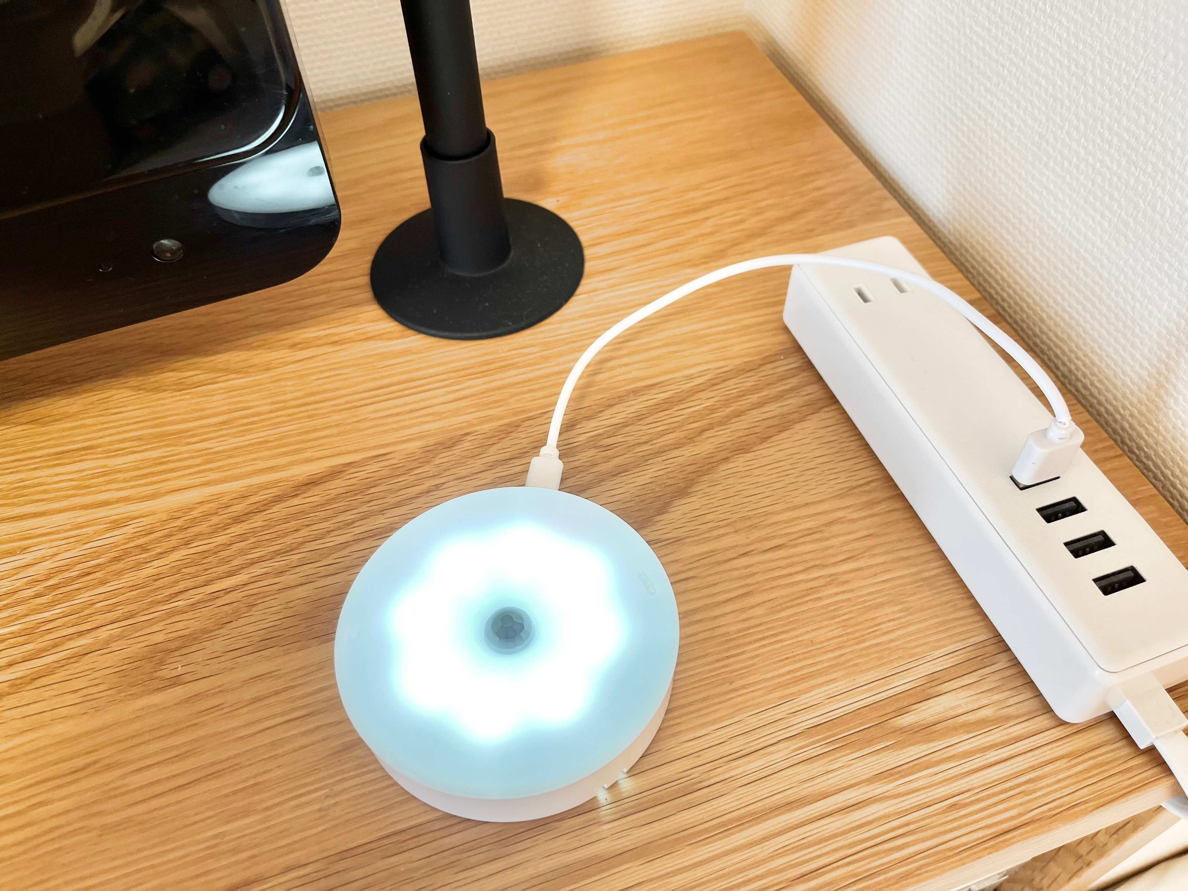 まず嬉しいのが充電式なところです。本体横側のmicro USBポートにmicro USBケーブルを接続し、パソコンやUSB-ACアダプター側にも接続して充電すれば、いつでも使用できます。電池式だと電池が切れて慌てて買いに行くこともしばしば…。でも充電式なので、そんな心配は入りません。