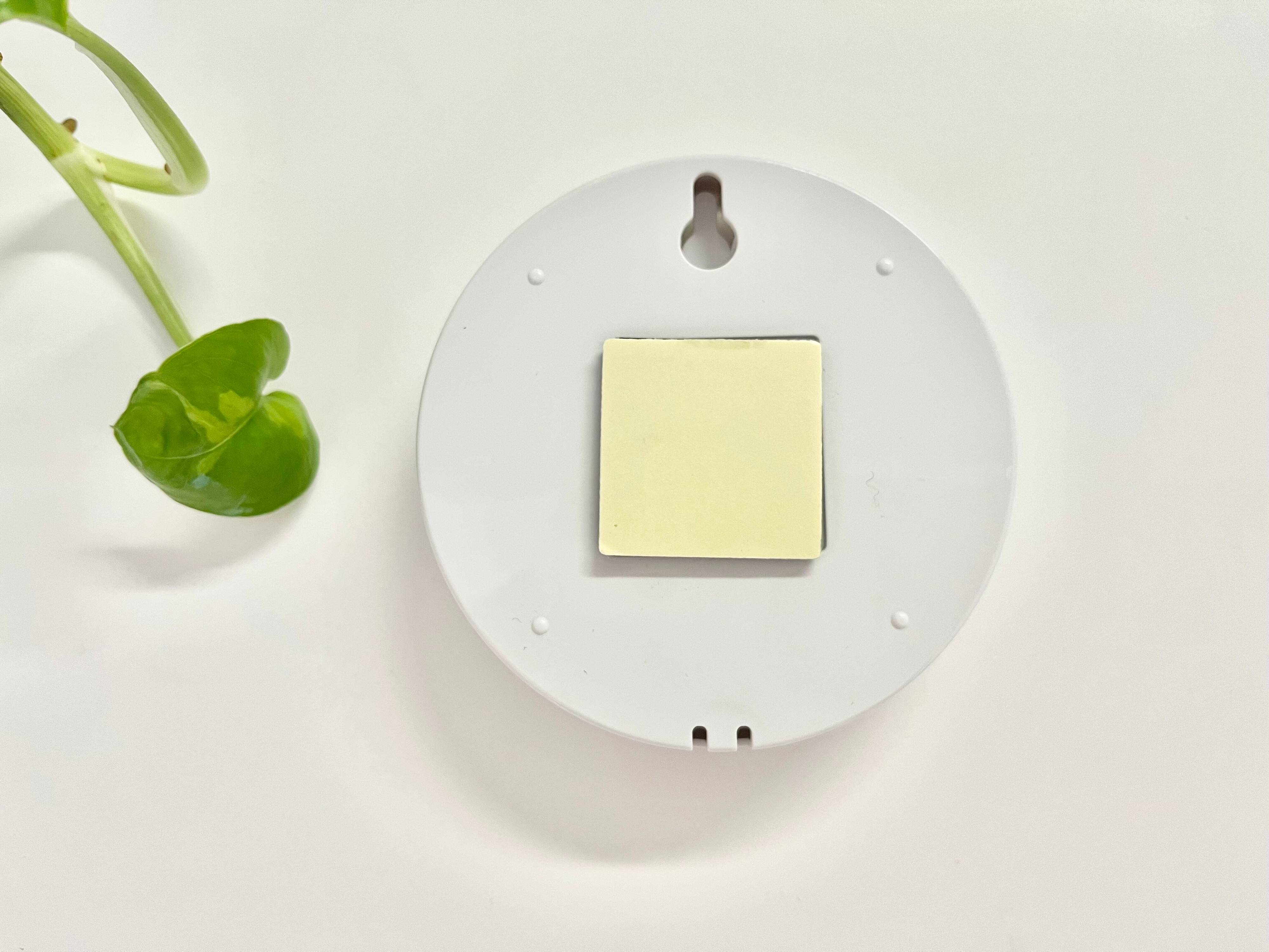 また、磁石を利用して取りつけることもできます。本体裏側に磁石がついているので、磁石がくっつく場所にペタッと取りつけることができます。また付属で粘着式の金属パネルも入っているので、好きな場所にペタっと金属パネルを貼りつけると、平らな面であれば磁石のつかない場所にも取りつけられるようになります。