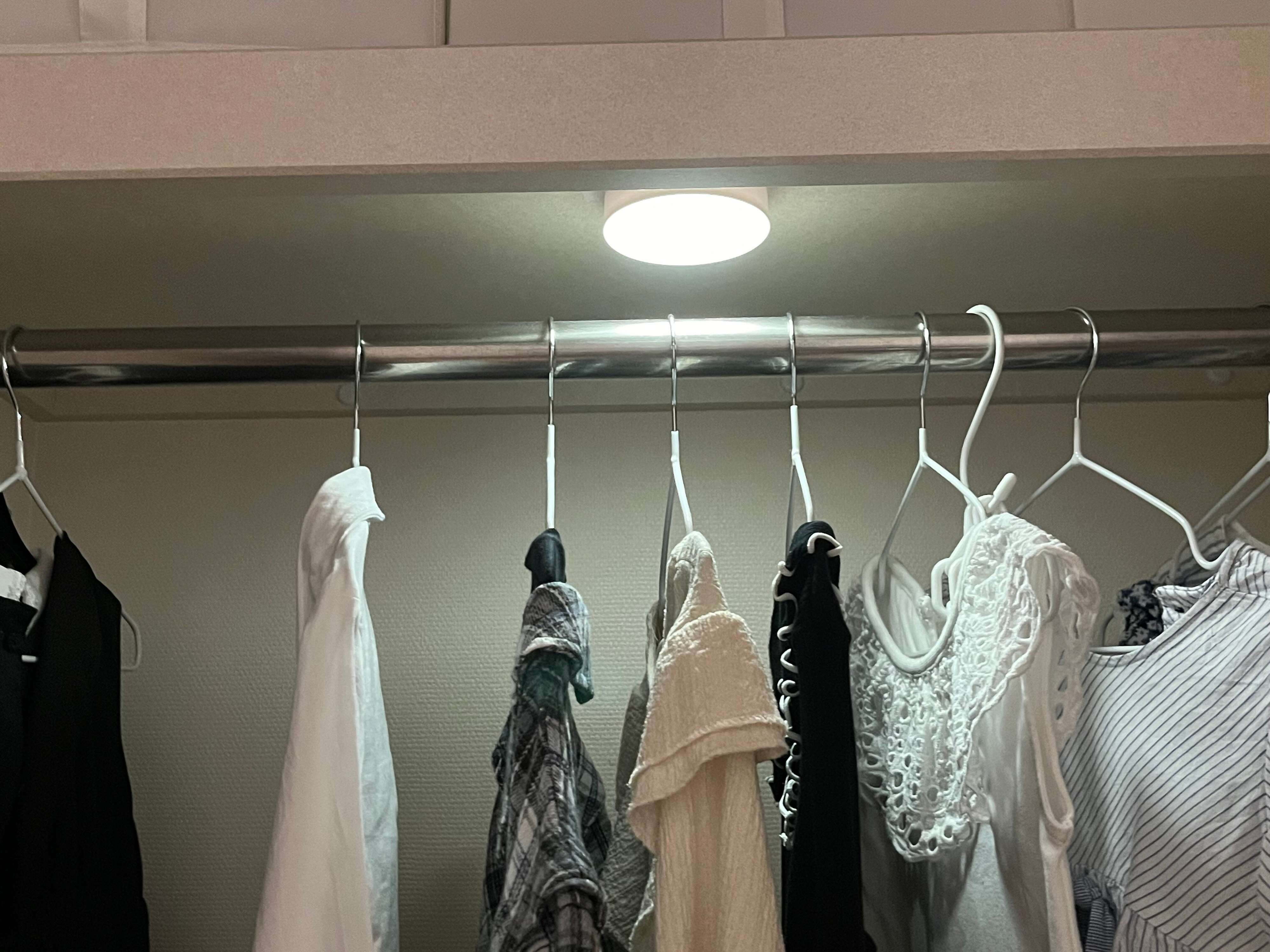 「人感・明暗センサーLEDライト」は、クローゼットやパントリーなど使用時間は短いけど、電気がないと暗くて困る場所に使用するのが最適です。
