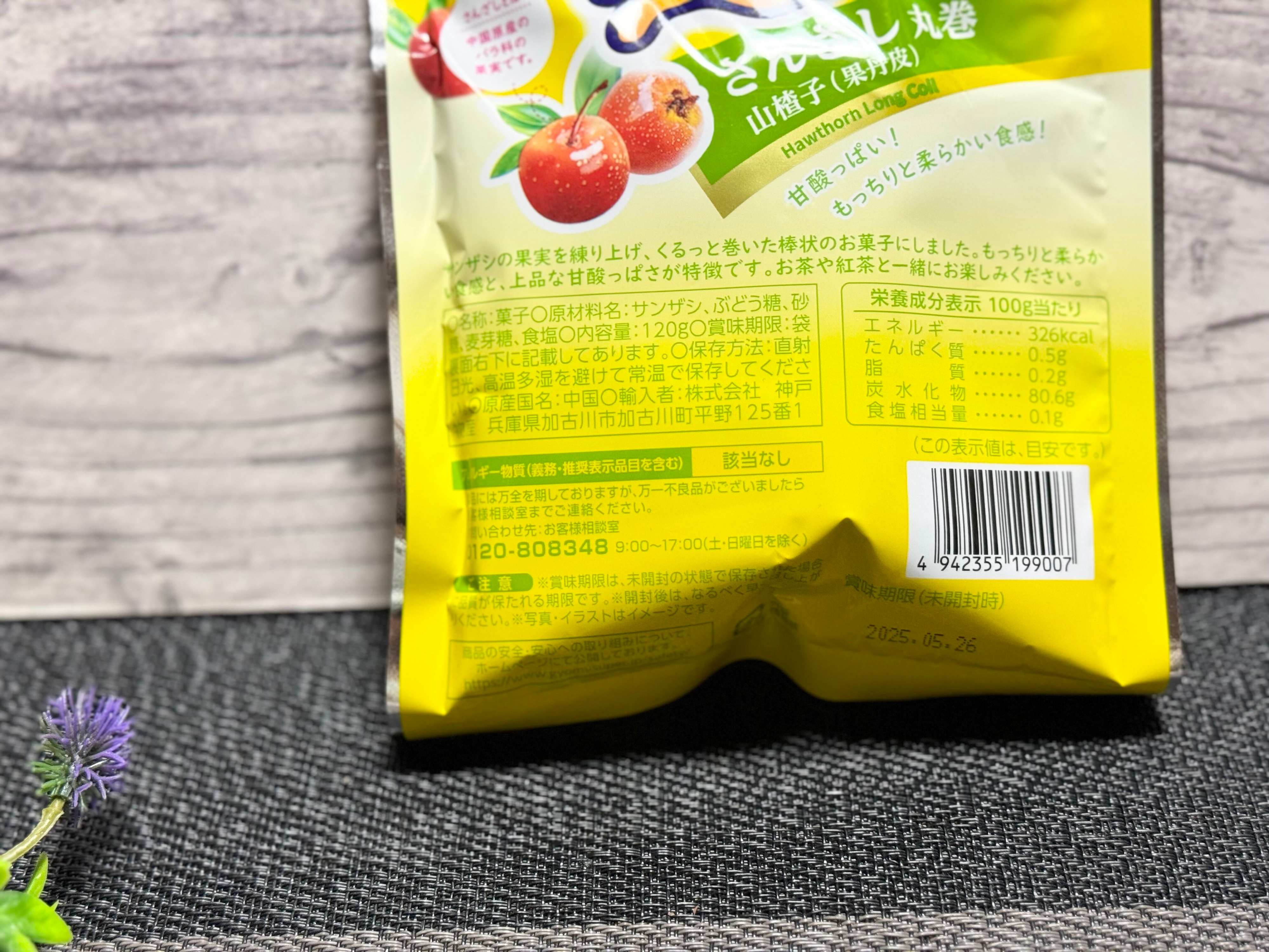 ・さんざし丸巻き 税込み181円 120g(6本いり)100gあたり326kcal