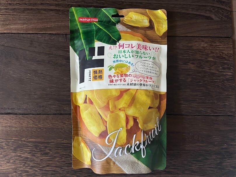 フルーツの名前がそのまま商品名になっているのですが、こちらはフリーズドライのジャックフルーツを植物油で揚げたお菓子。実際フルーツそのままのようなもので、フルーツチップスとして食べられますよ。