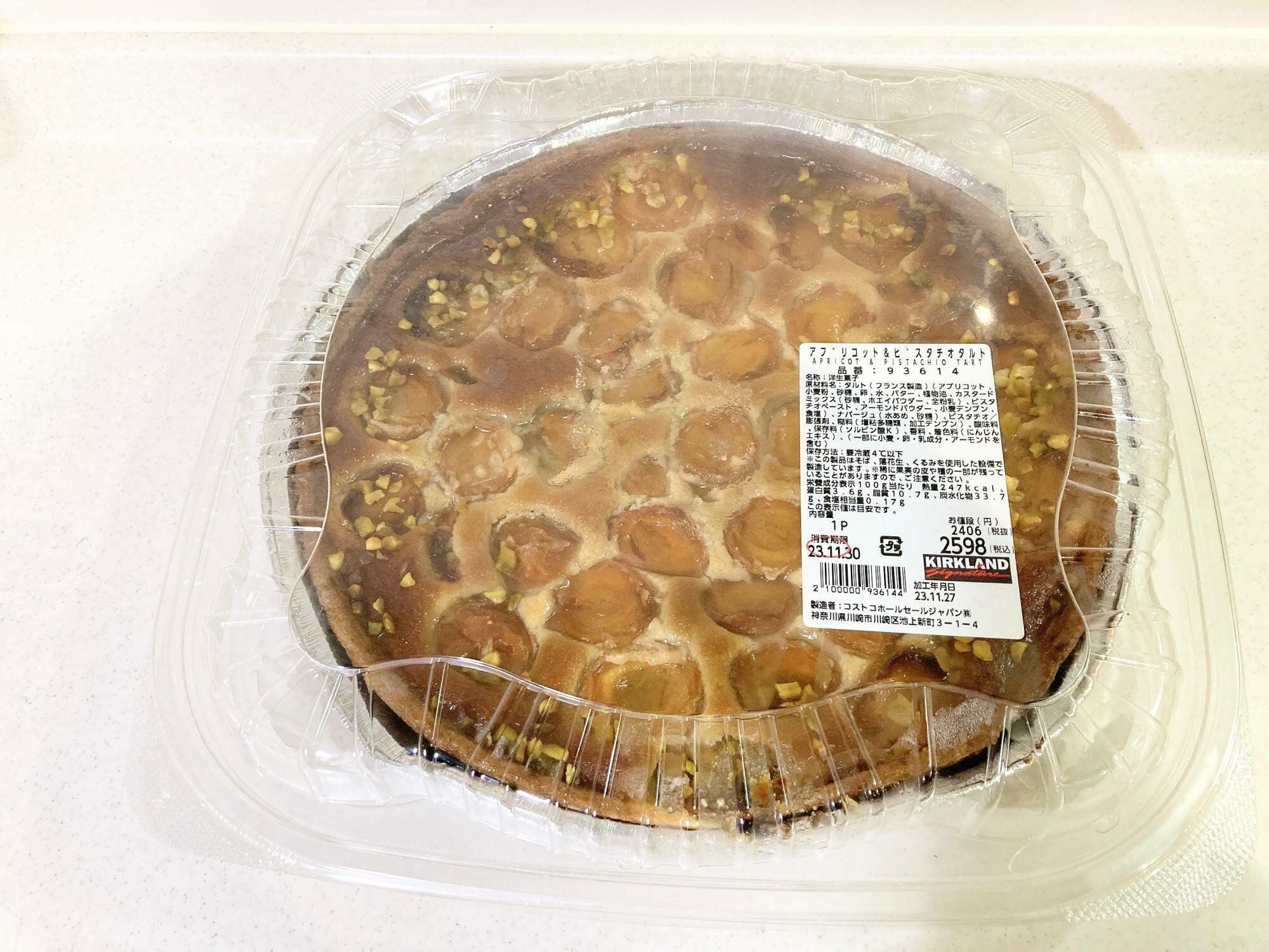 コストコで定番で販売されているタルトの新作はアプリコット&ピスタチオ。たっぷりのアプリコットとピスタチオがしきつめられていて見た目もはなやかな商品です。