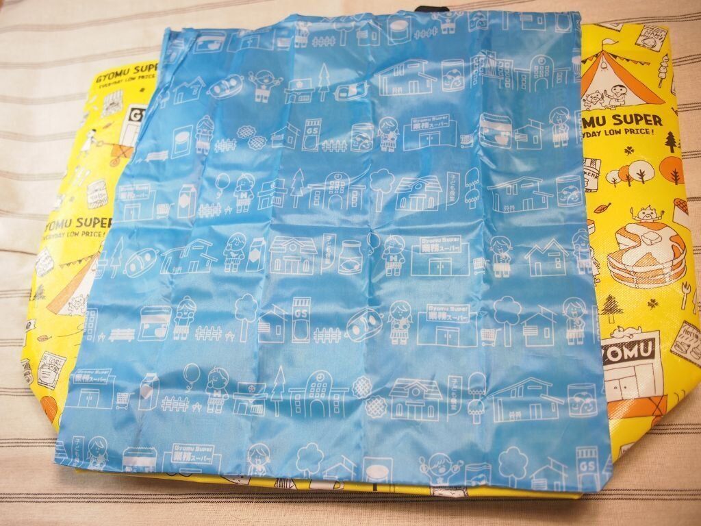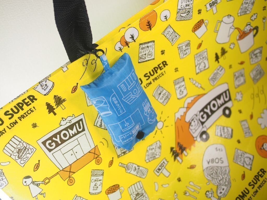 業務スーパーのエコバッグの人気の一つに、キュートなデザインであるところがあげられるのですが、折りたためるタイプも負けていません。