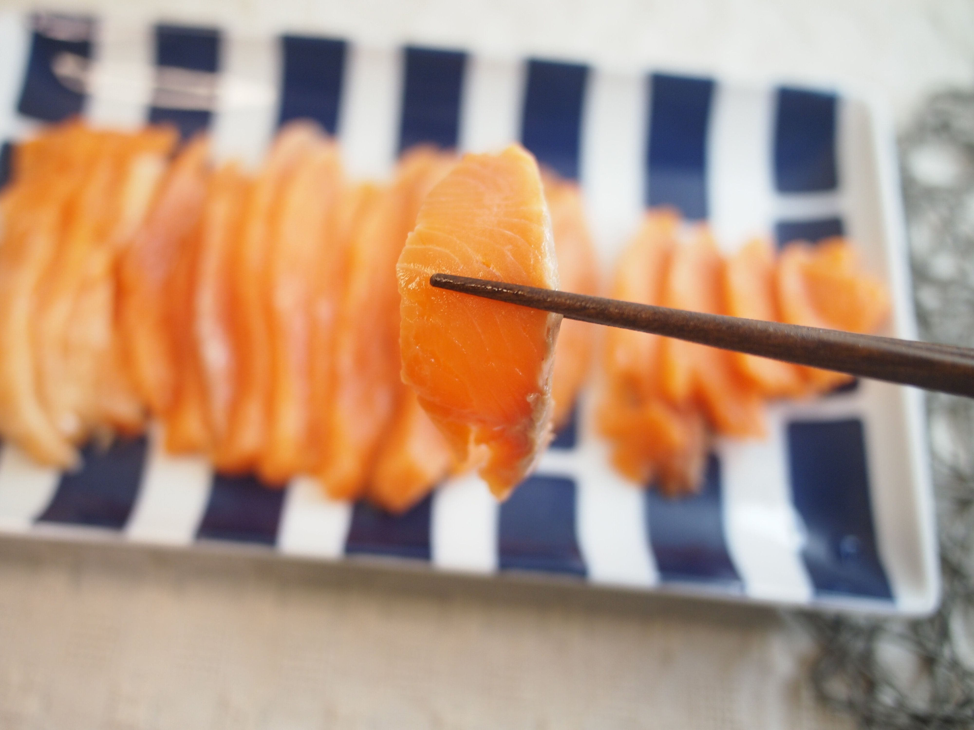 お手頃価格といえども、気になるのはお味ですよね。お刺身の中で一番サーモンが好きなのでワクワクしながら試食してみました。