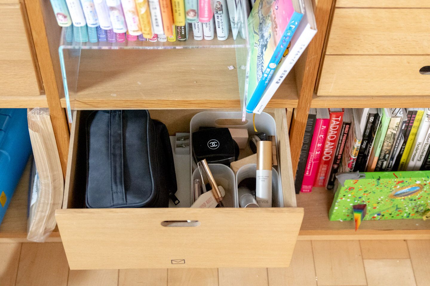基本的に投げ込み式。きちんとした収納は続かないから、大ざっぱくらいが◎