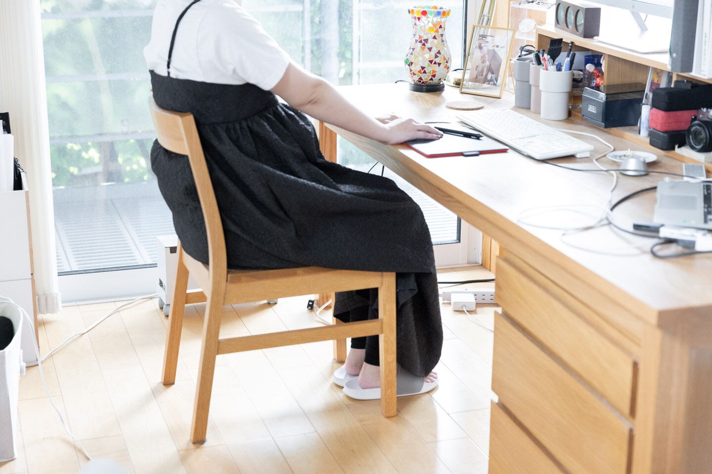 デザインも座り心地もお気に入りの無印良品のいす。脚をカットしてくれるサービス(有料)で、自分の身長に合わせてカット