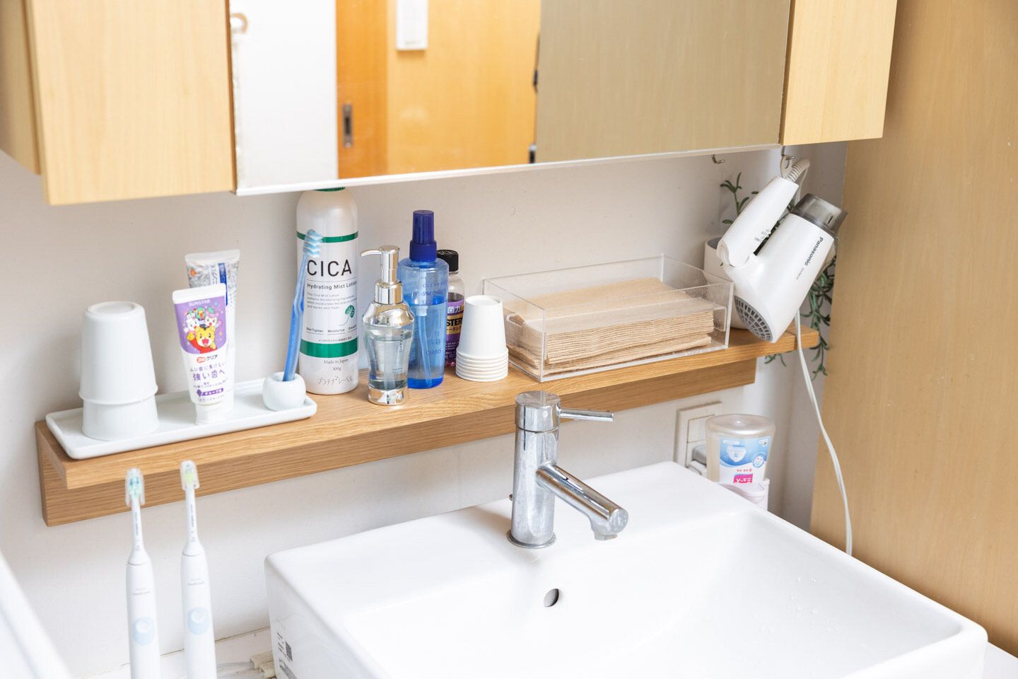 そして、最近洗面所にも設置しました。ずっと「洗面所の下にものが置けるスペースがあればいいな」と思っていたのですが、もっと早くに気付けばよかったー!