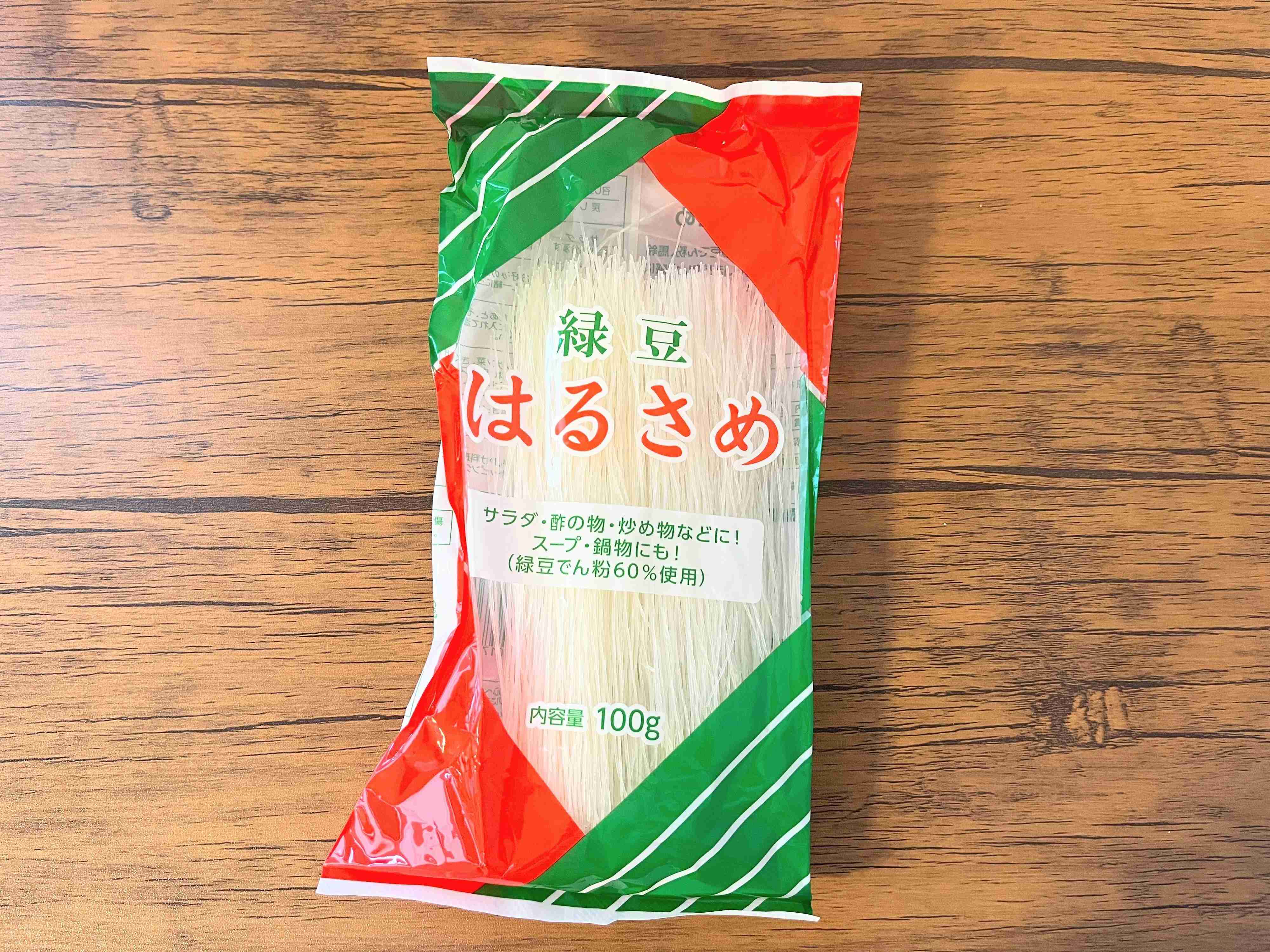 はじめにご紹介するのは春雨です。春雨はマーボー春雨やスープ、サラダなど幅広いメニューに使える万能食材ですよね。業務スーパーでは100円を切る65円とお求めやすいお値段で購入することができます。