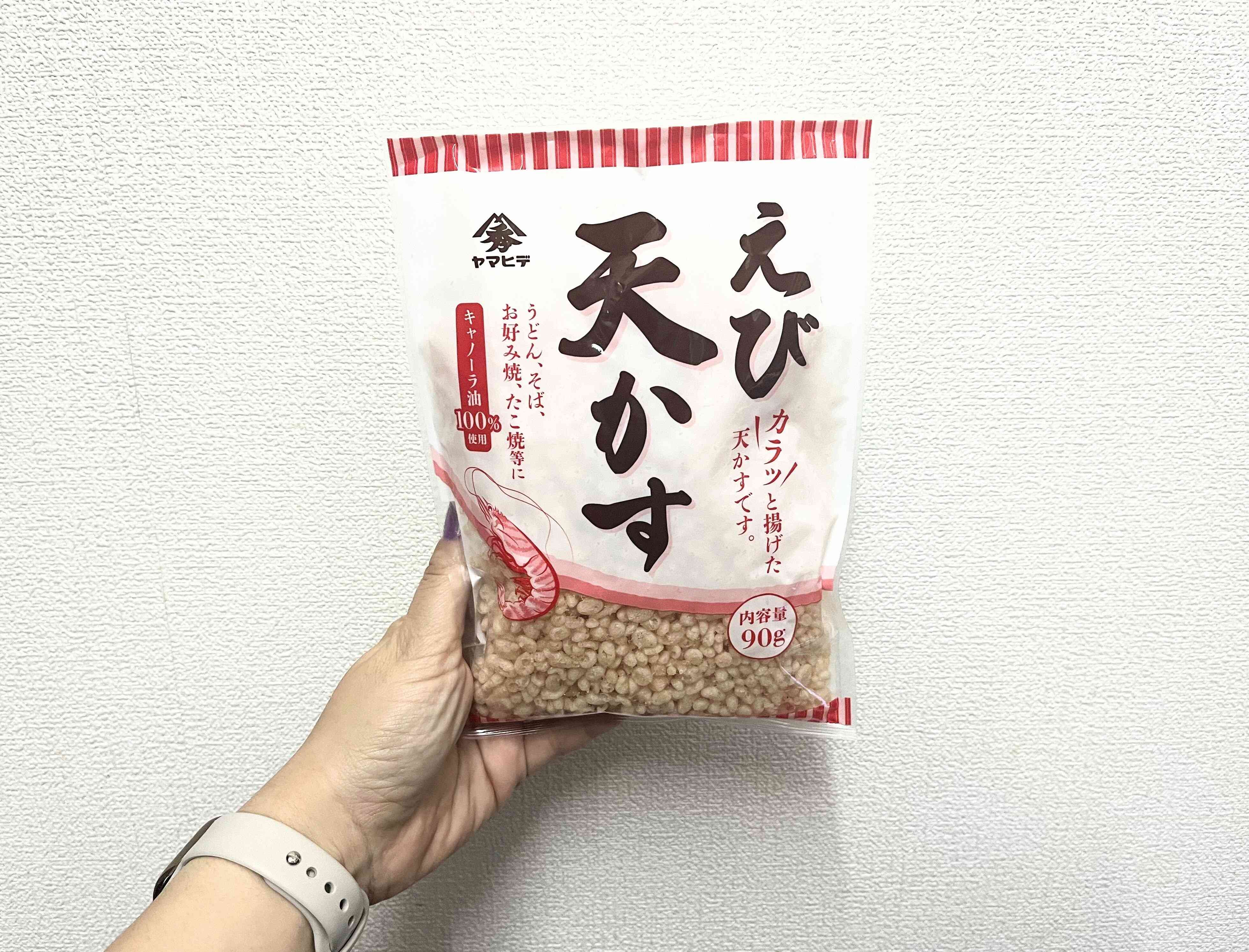 3つ目はお好み焼きやたこ焼きからうどん、おにぎりまで幅広い用途で使える天かす(揚げ玉)です。