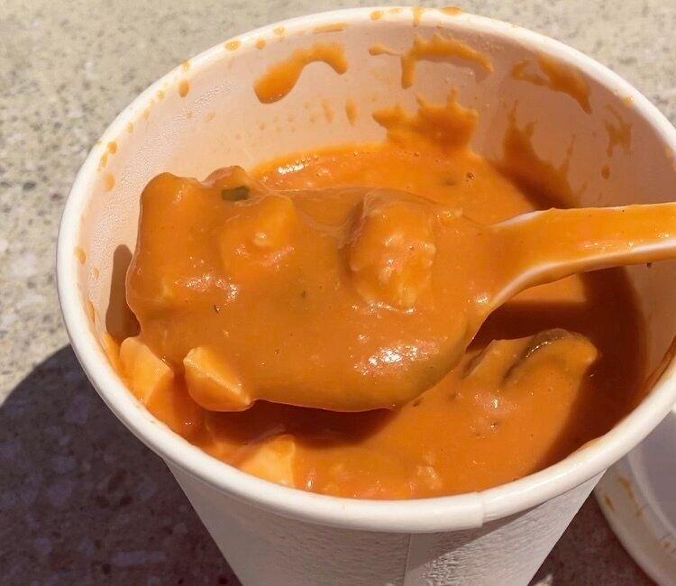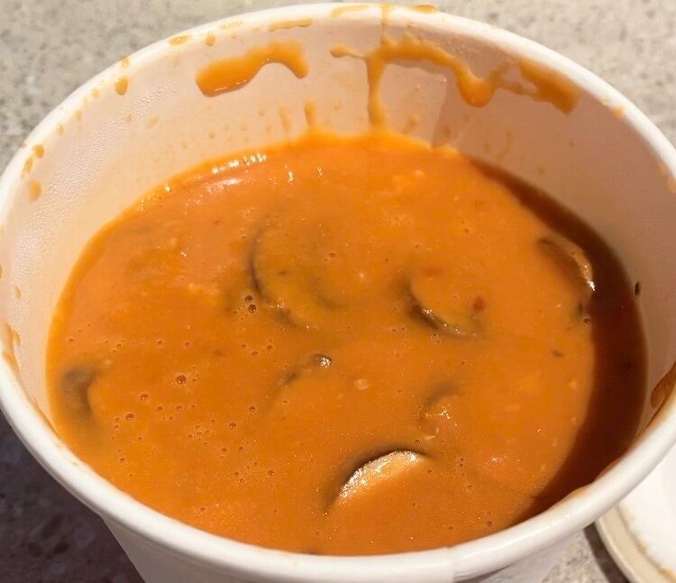 フードコートのスープが期間限定でチキントマトビスクになりました。