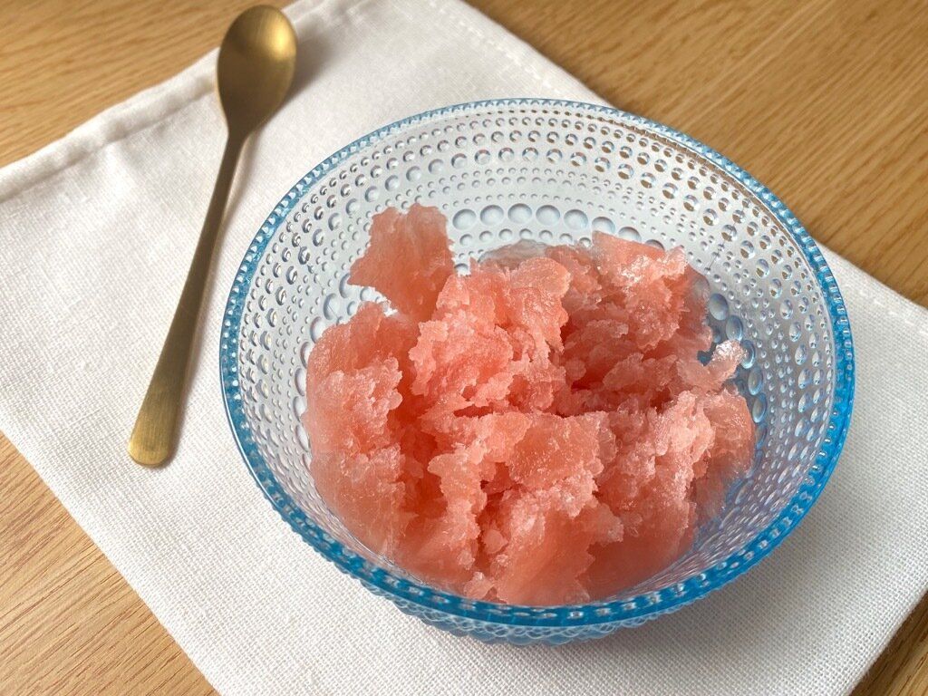 パッケージのままギュッと手で押し出して食べることもできますが、今回はクラッシュして器に移して食べました。見た目も涼しげで夏にピッタリです。