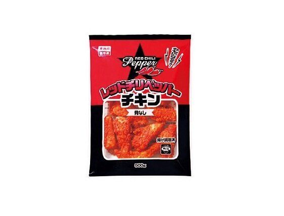 スティック状の柔らかチキン。「ほどよい辛さで、後引く味。揚げ焼きにすると、ザクッとした食感が楽しめてよりおいしい!」(臼)