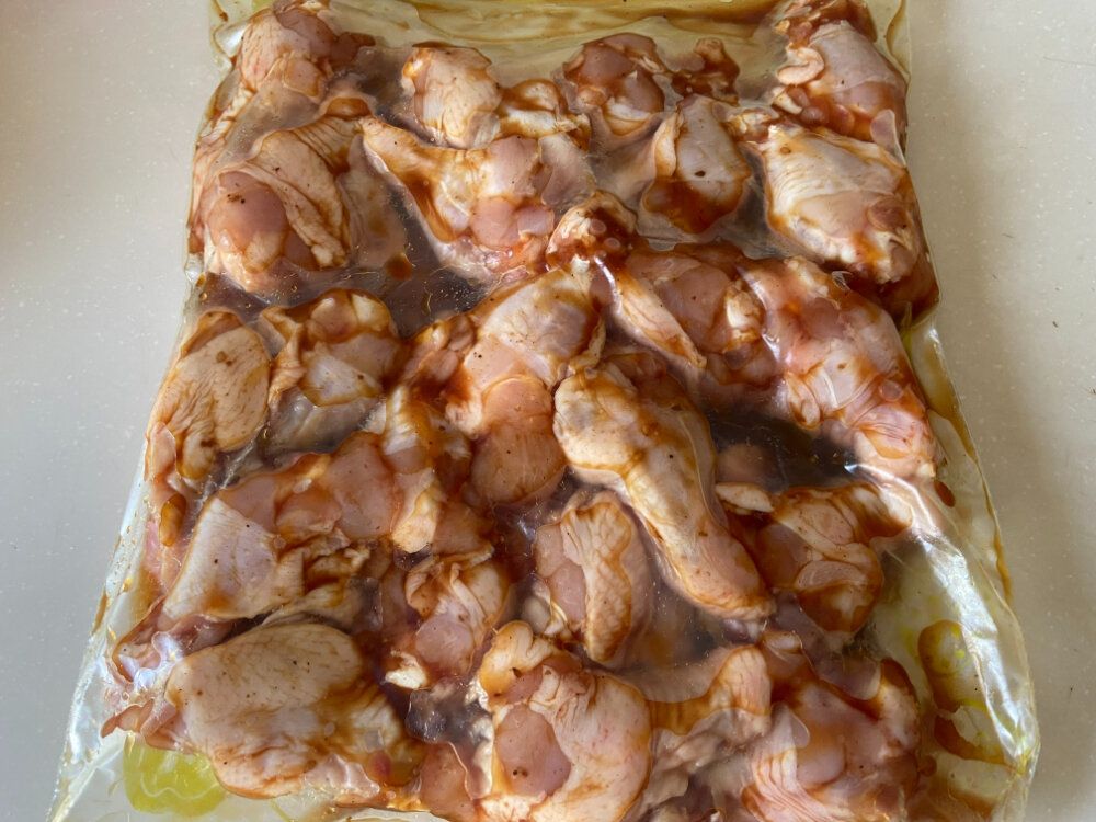 チャックをしっかり閉じて全体をまんべんなく揉みこみ、下処理完了。これを半日くらい冷蔵庫で漬けておきます。
