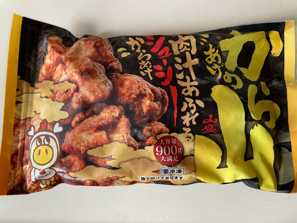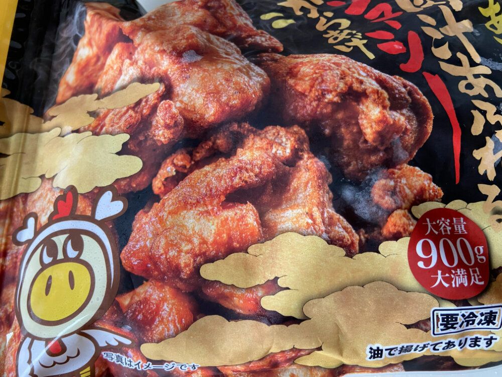 売り場でも存在感を放つほどビッグサイズの大容量パック。900g入りの冷凍からあげです。
