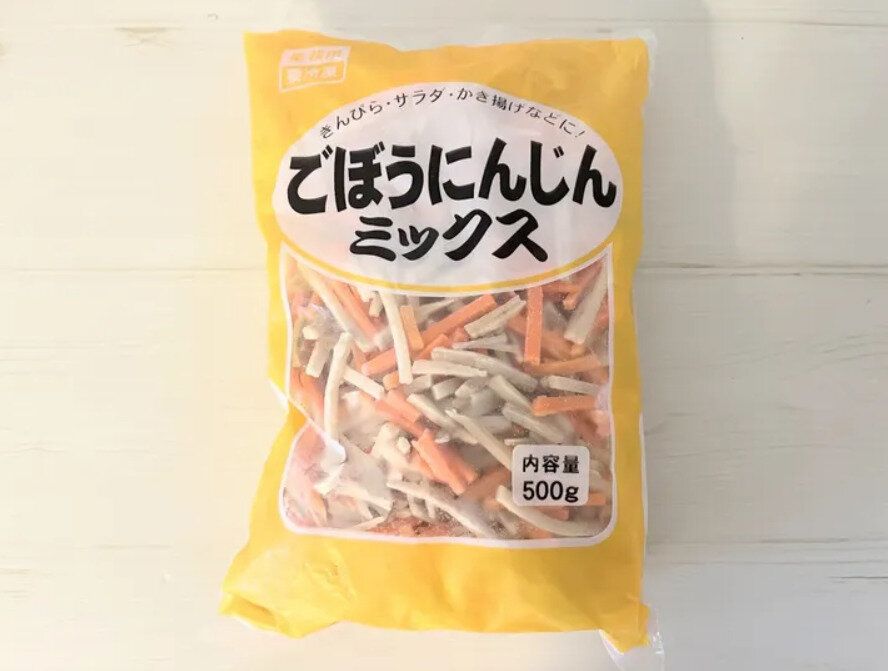 日ごろは八百屋さんで野菜を購入しているみさむーさんですが、業務スーパーの冷凍野菜も使いやすくてお気に入り。とくにこちらの「ごぼうにんじんミックス」は、時短にも節約にもなる。しかも多様に使えて、「常にストックしておかないと不安」とまで言わせる商品です。