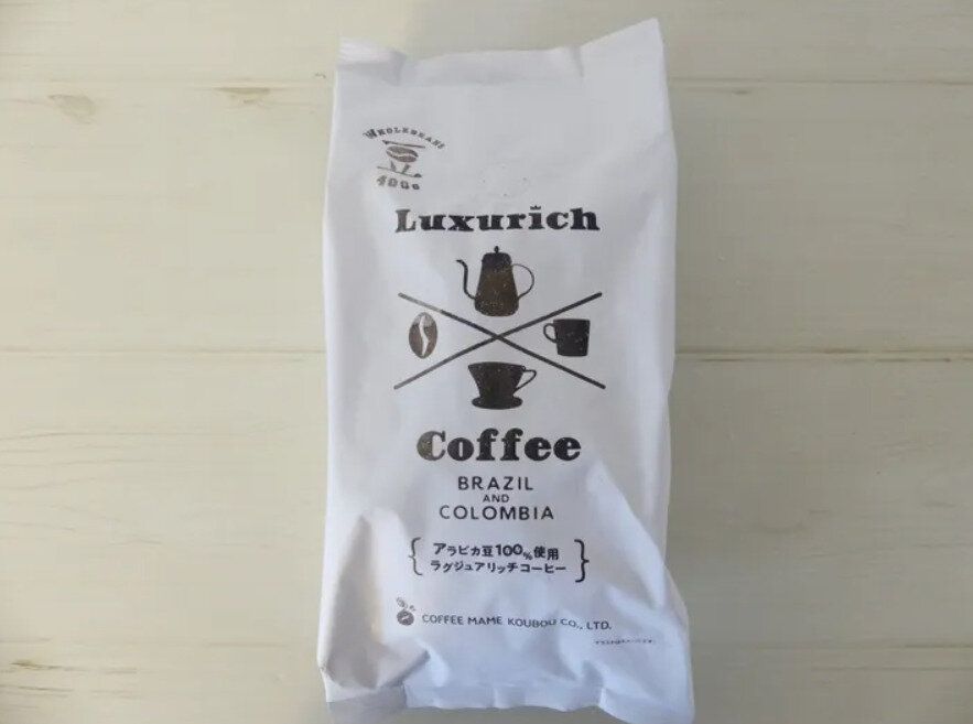 豆から挽けるタイプのコーヒーメーカーを愛用中で、みさむーさんは、毎日挽きたてのコーヒーを片手に株価や経済情報をチェックしています。そんなみさむーさんが最近お気に入りなのがこちらの「ラグジュアリッチコーヒー豆400g」です。中深煎りで苦みがあり、ミルクとの相性も抜群。