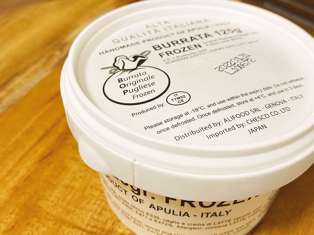 冷凍コーナーにある、ブッラータチーズ。