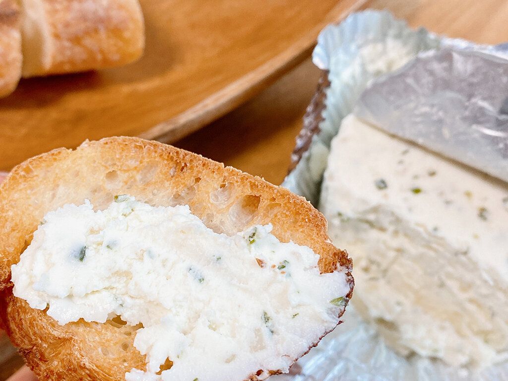 濃厚なクリームチーズの中にオニオンチャイブ(あさつき)の香りが広がります。